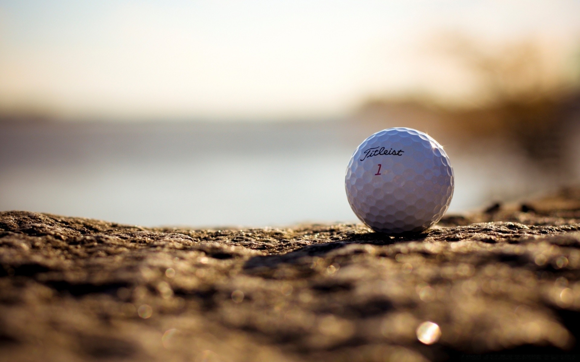 Bola de golfe macro na areia