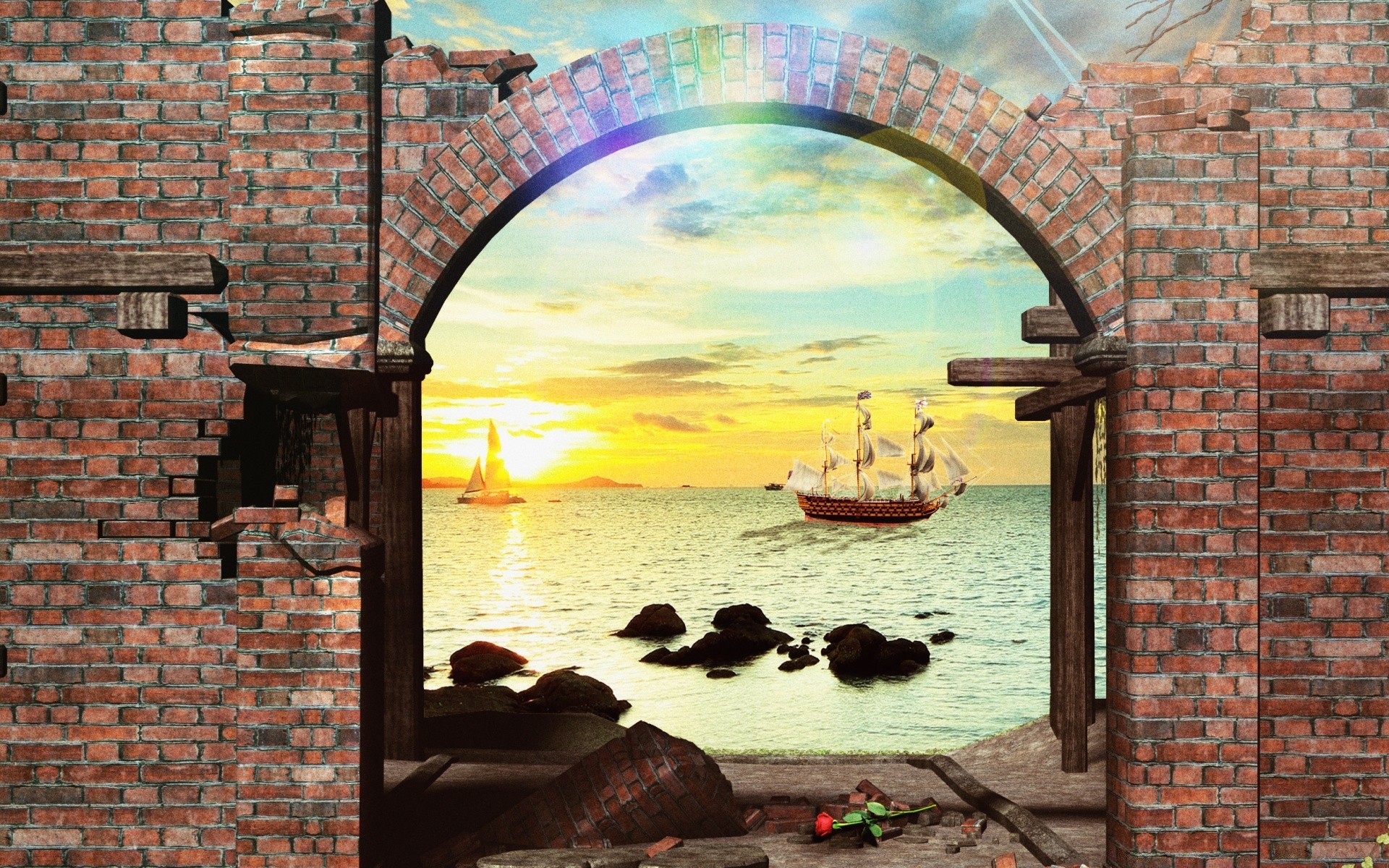 Um arco nas paredes de uma casa antiga uma visão criativa abriu aos olhos