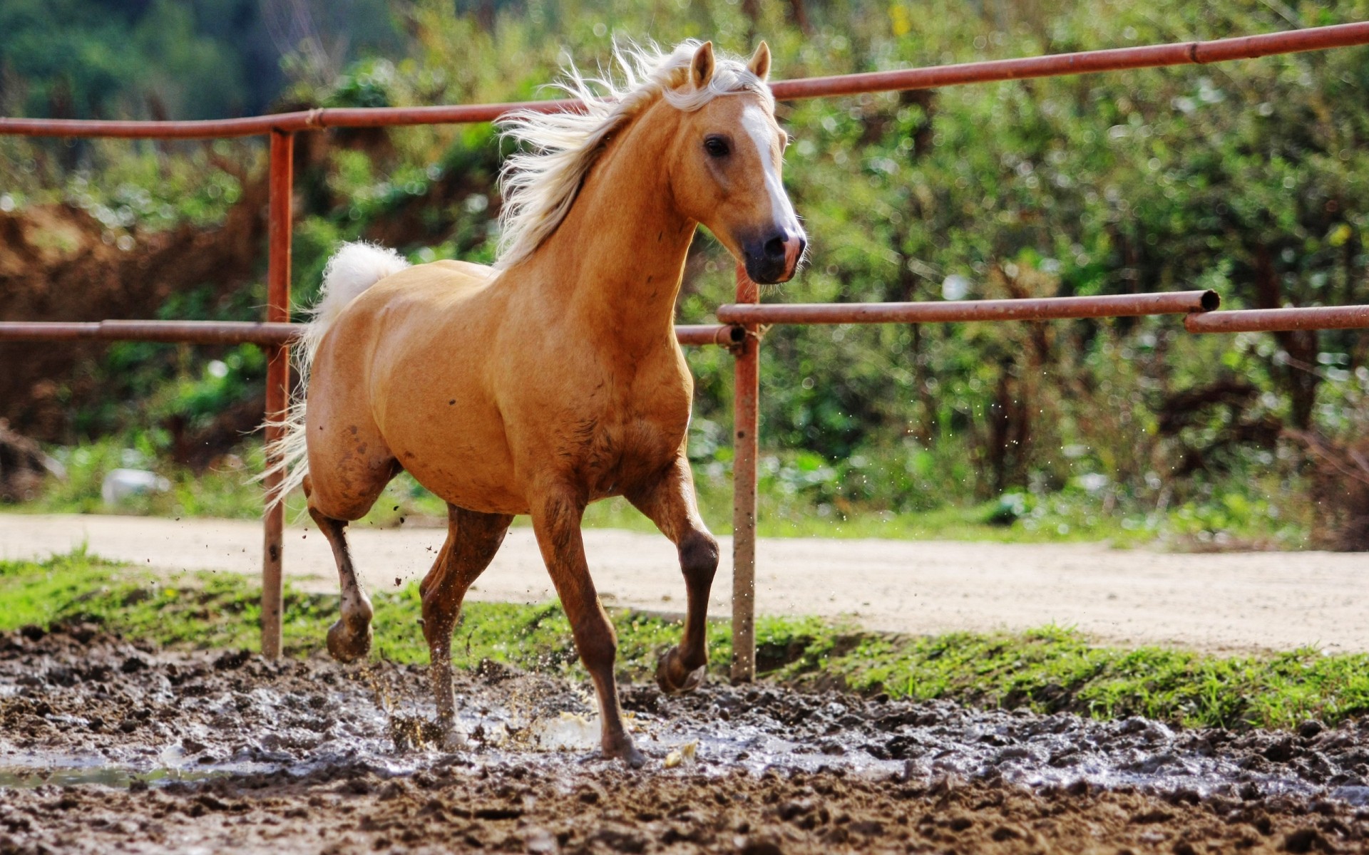 Garanhão jovem no curral na fazenda