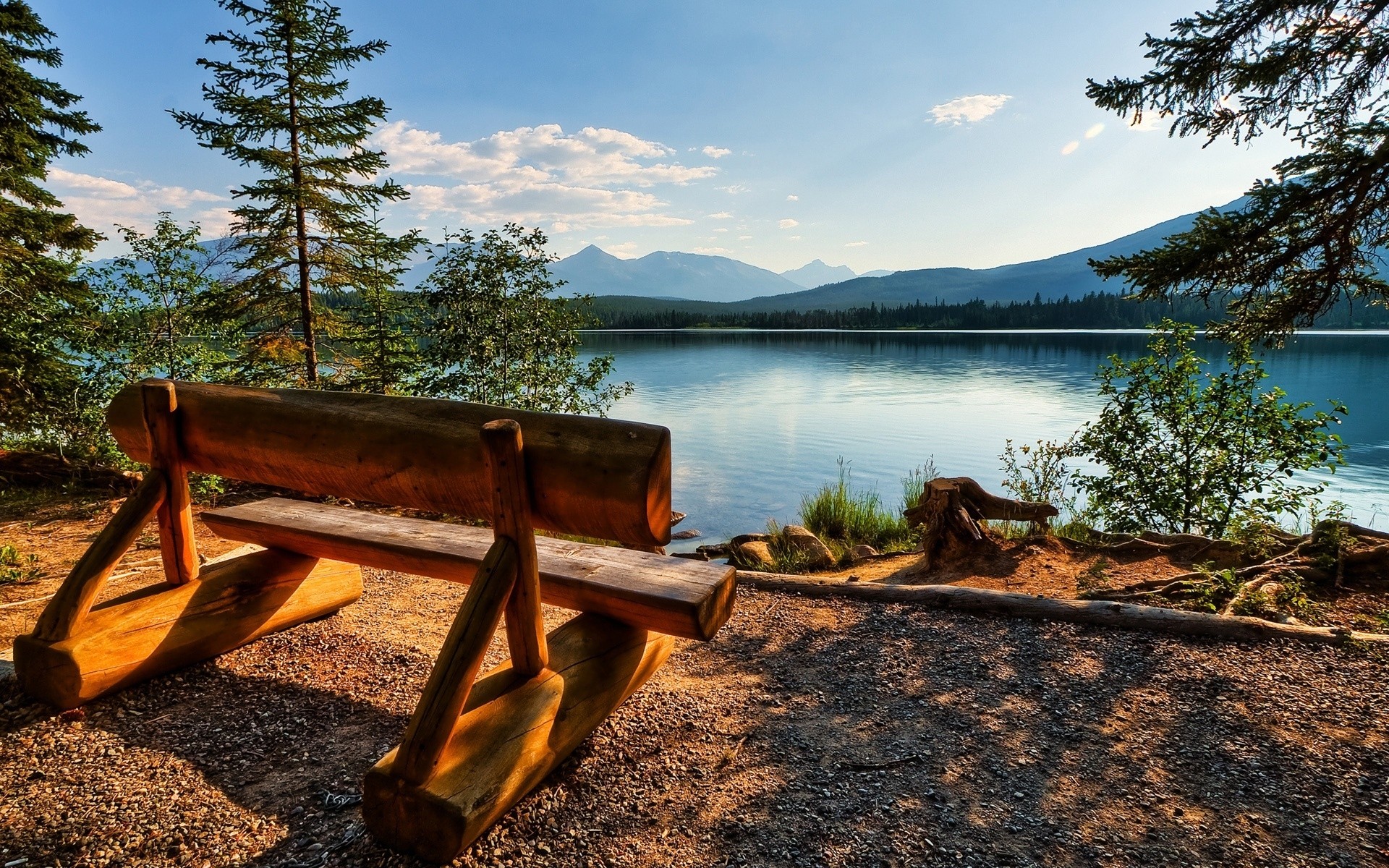 Lago perto da floresta e das montanhas