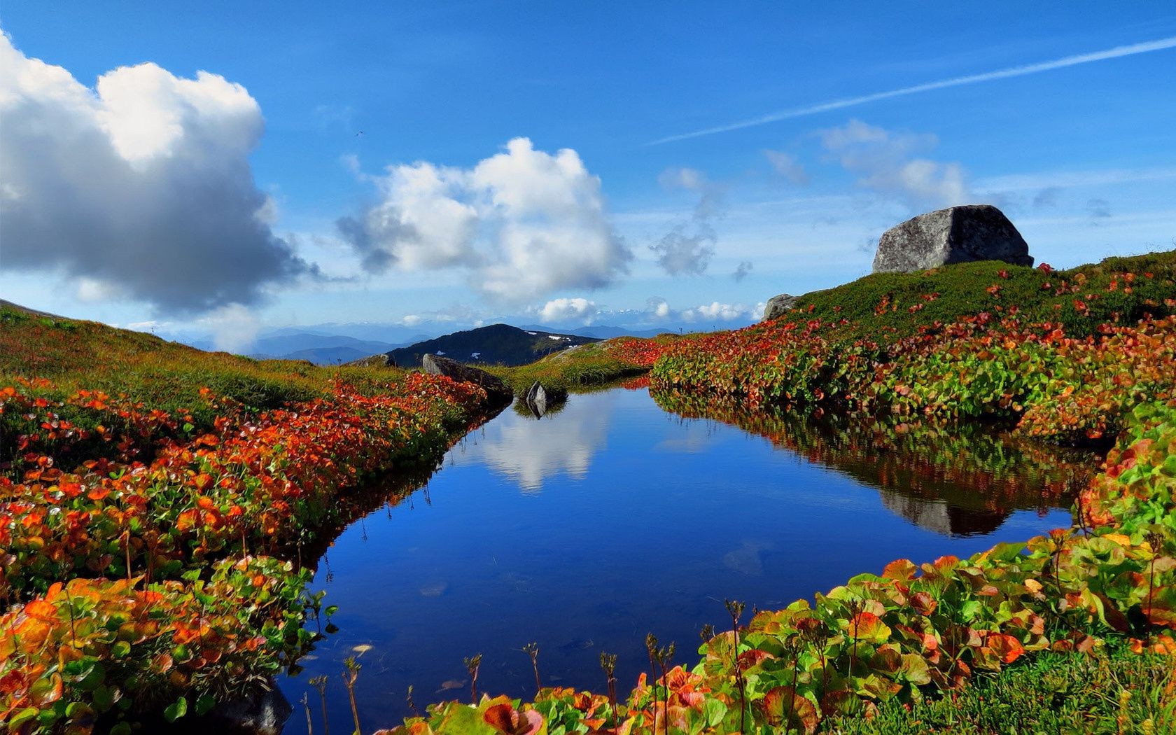 Paisagem do lago no Crepúsculo ao pôr do sol