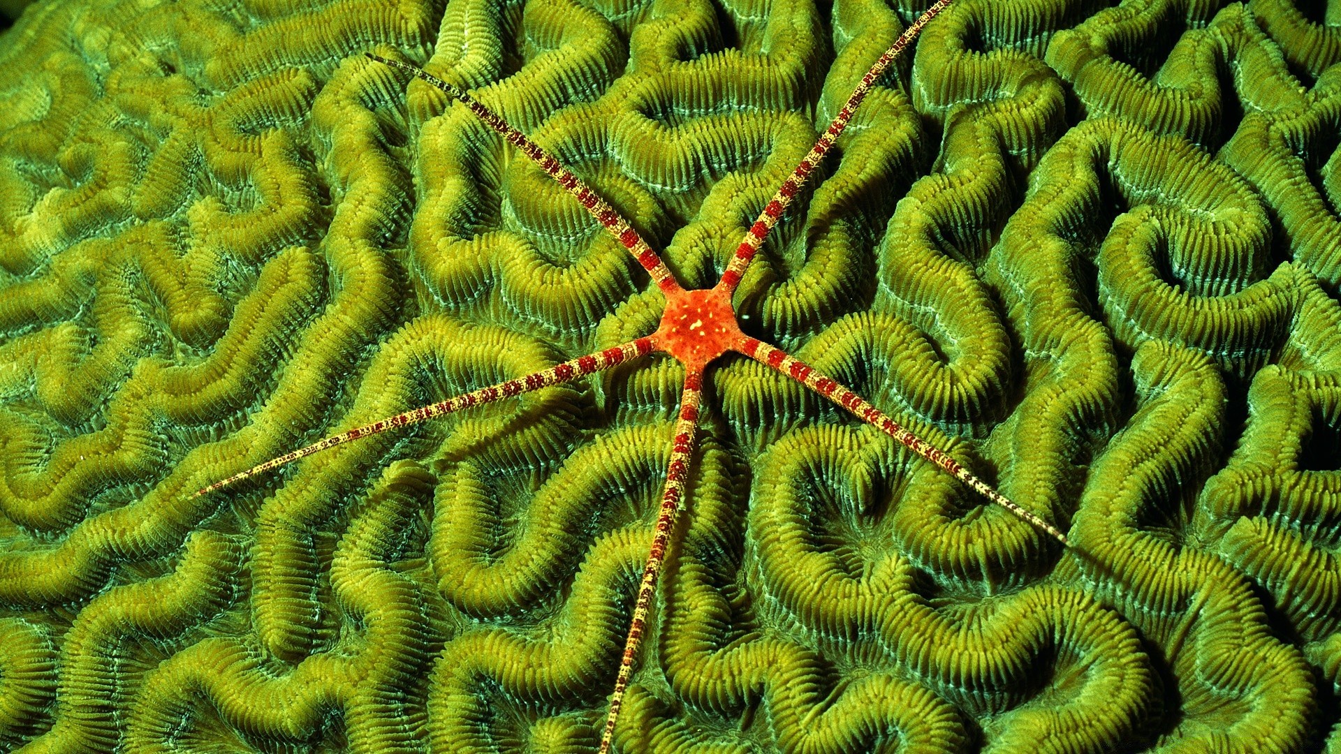 Estrela do mar sobre um fundo verde Debaixo d'água