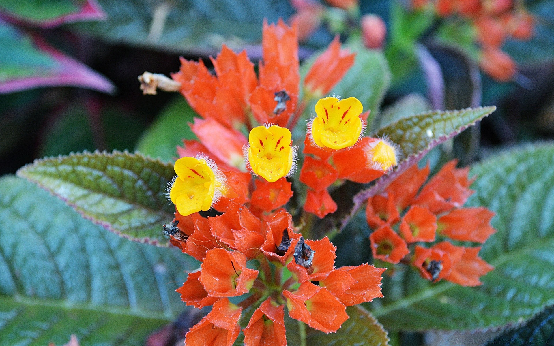 Flor roxa com meio laranja
