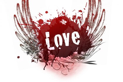 Coração com asas e lettering love