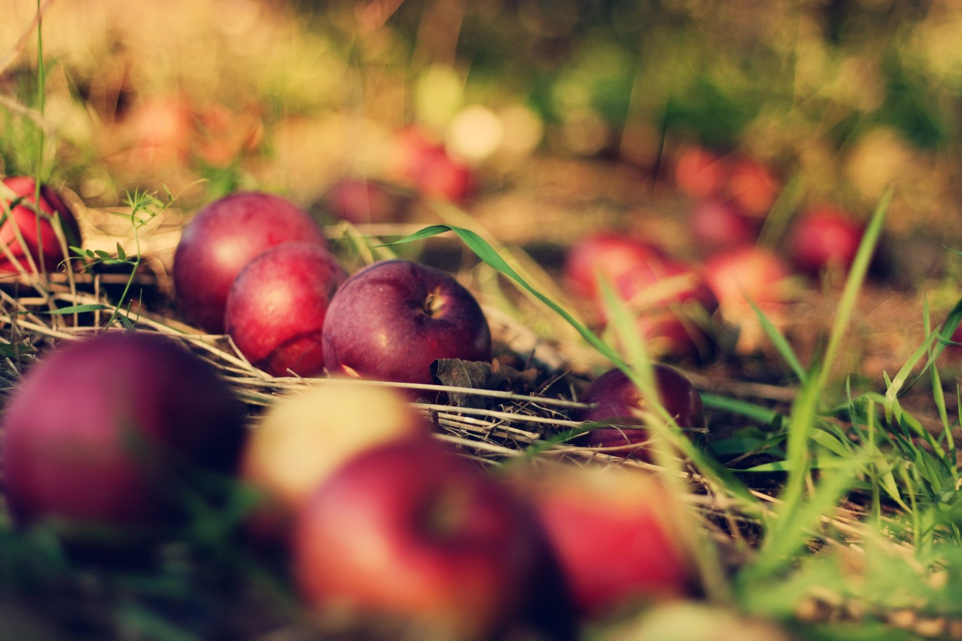 Maçãs vermelhas caídas no chão