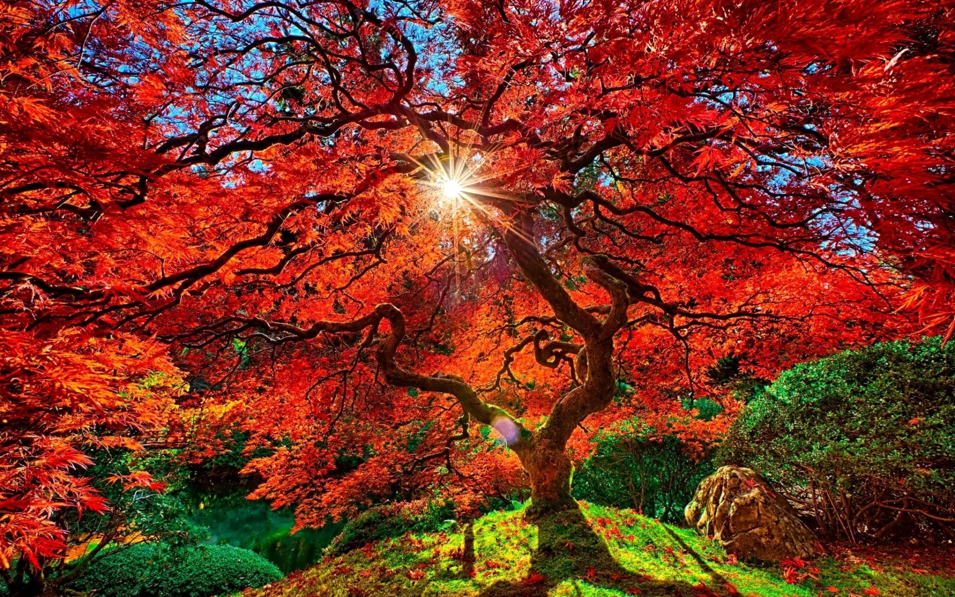 Folhas de bordo amarelas e vermelhas na luz do solFolhas de bordo amarelas e vermelhas na luz do sol