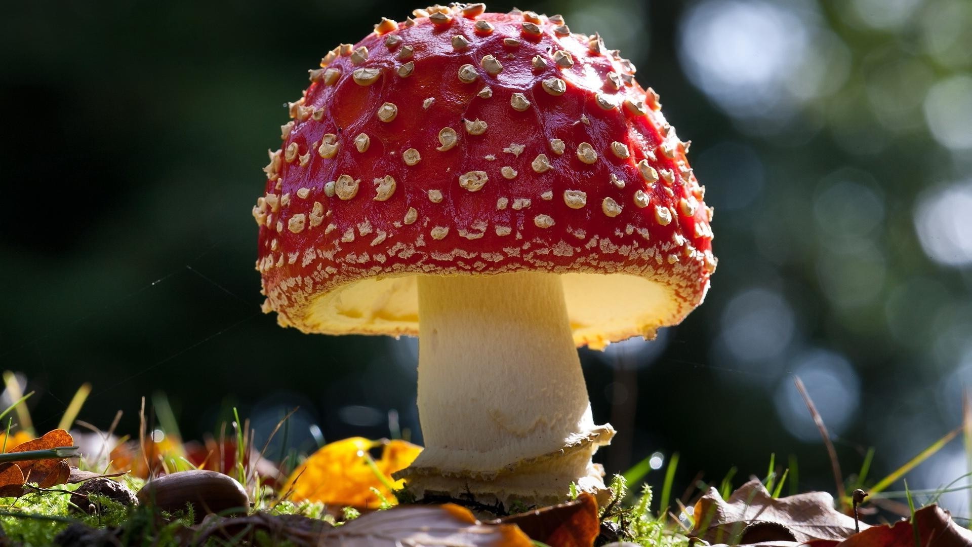 Agaric venenoso permeado pela luz do sol