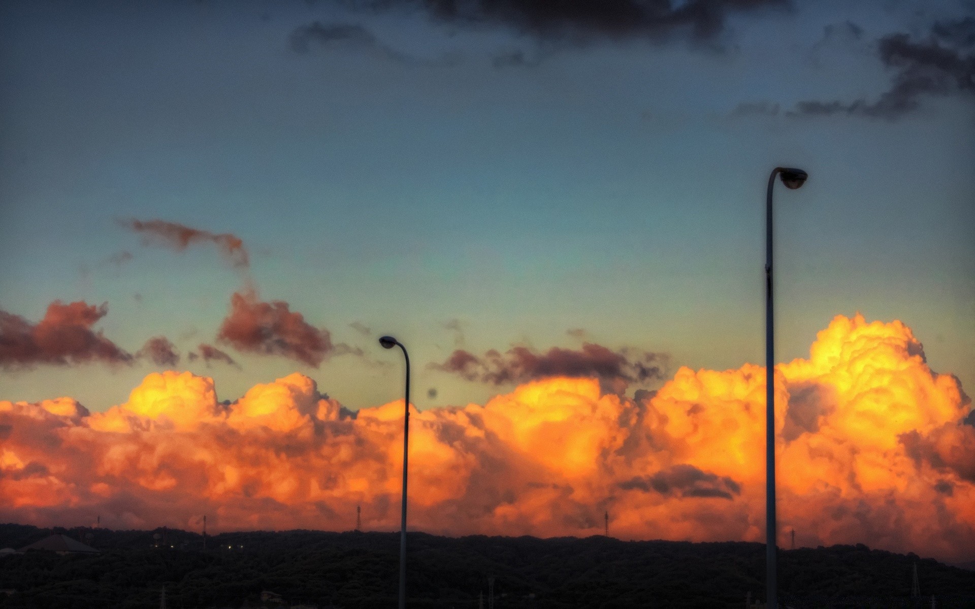 Pôr do sol laranja, poste de luz