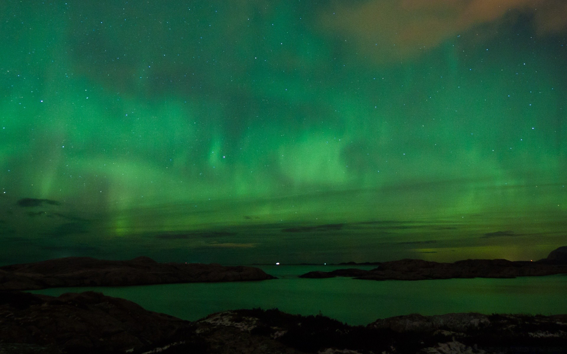 A costa nas luzes do pôr do sol é refletida nas águas costeirasA costa nas luzes do pôr do sol é refletida nas águas costeiras