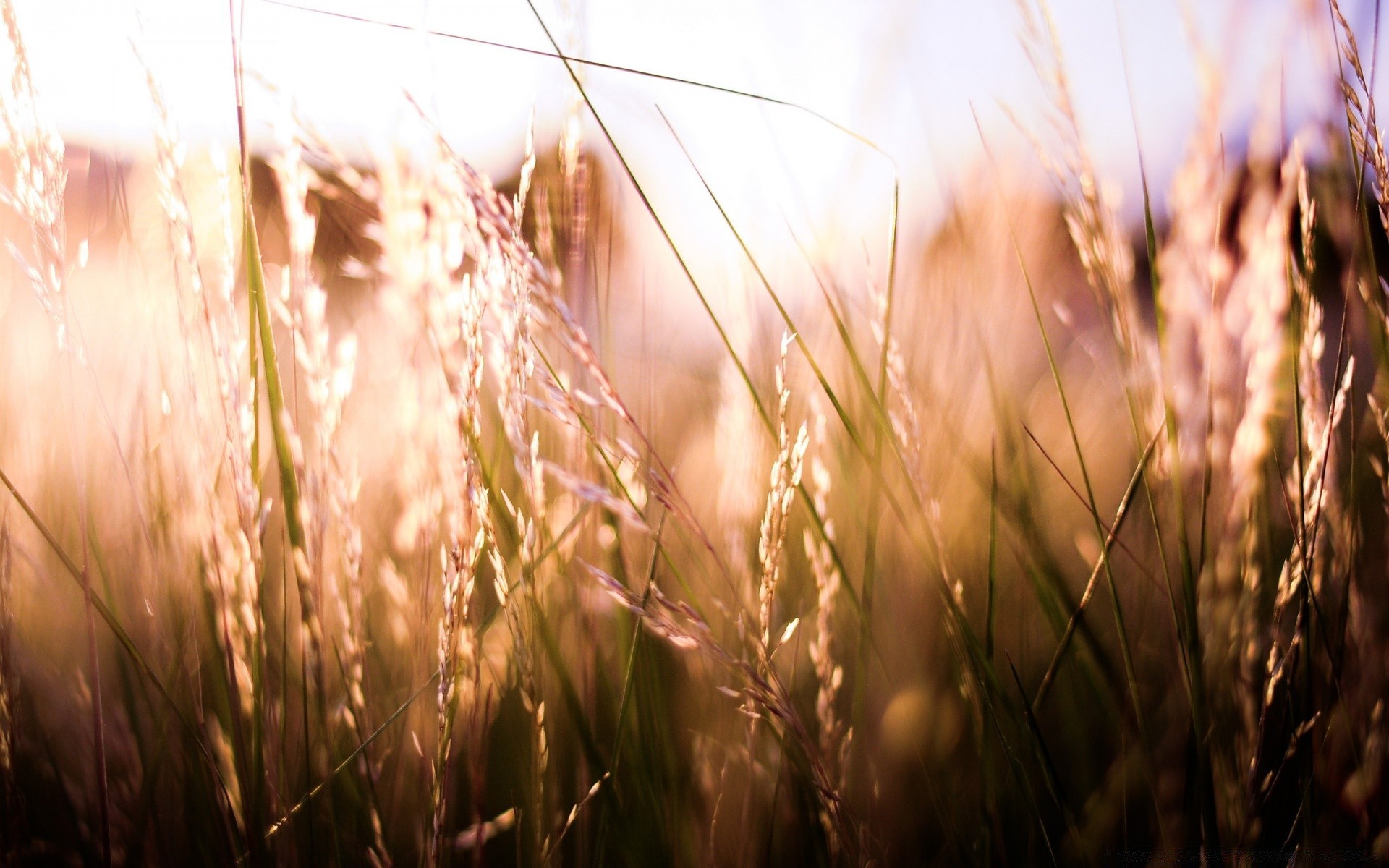 Espigas no campo são iluminadas pelo sol