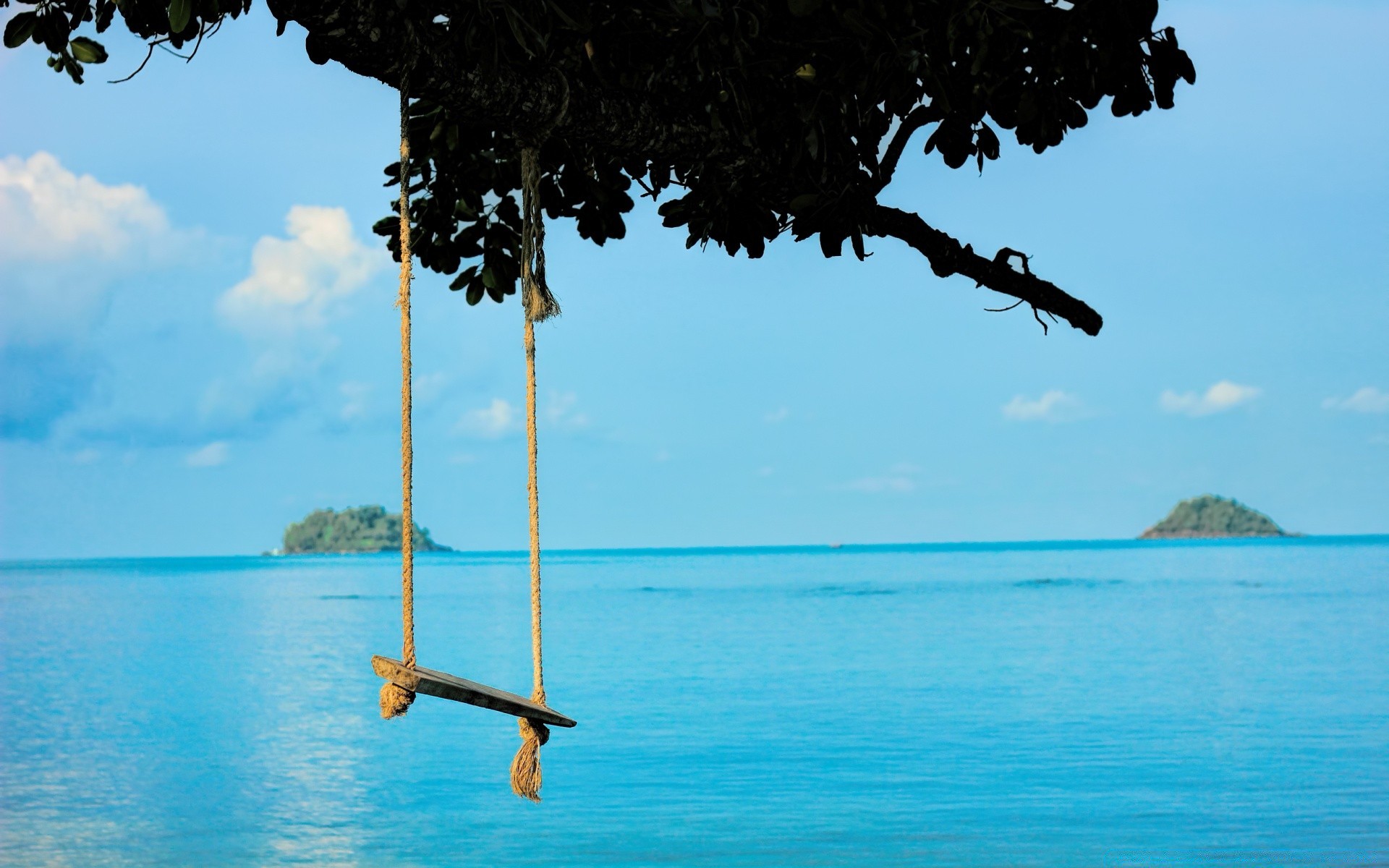 Balanço de corda no fundo do mar azul
