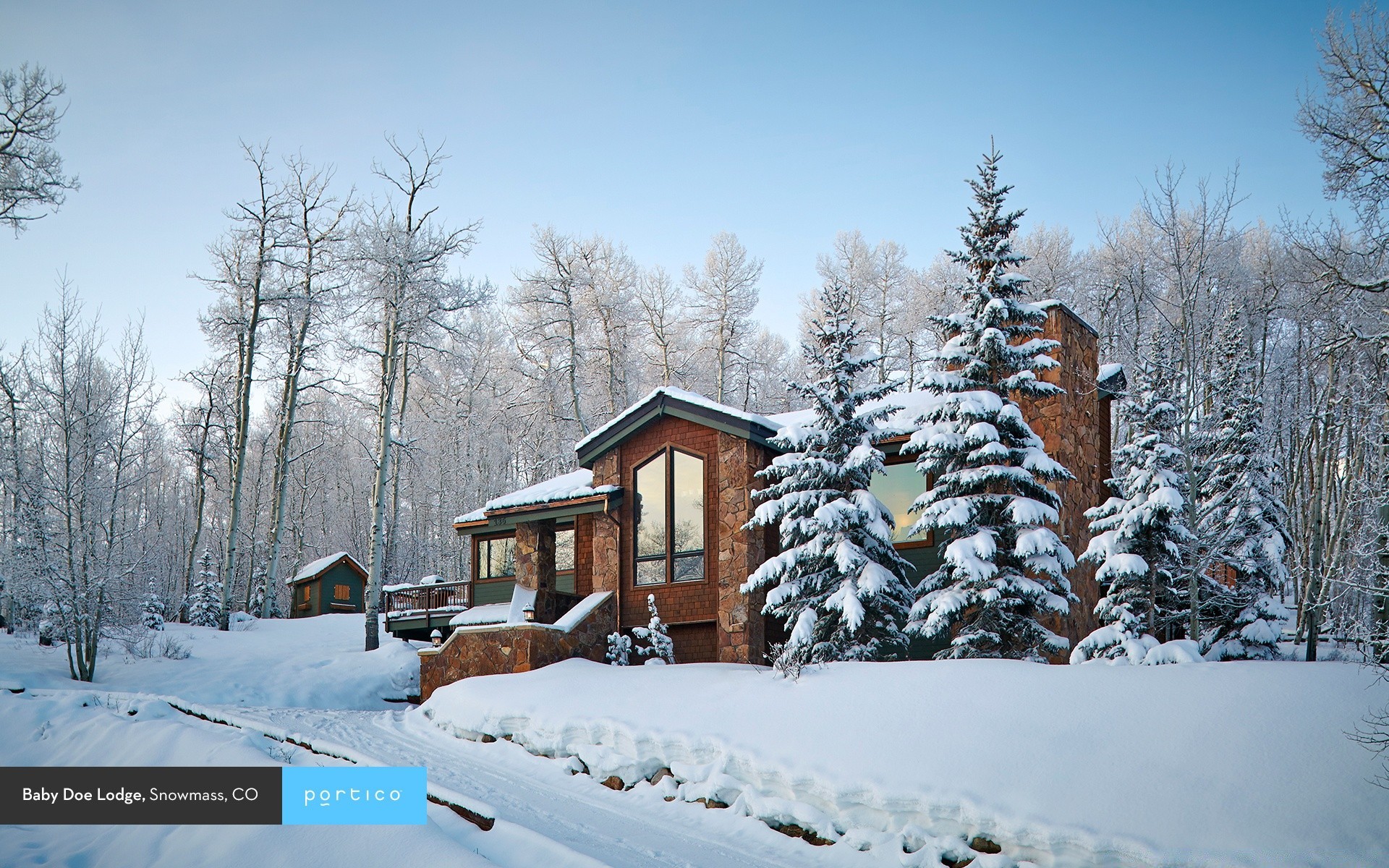 Um palácio solitário no meio de uma floresta de inverno