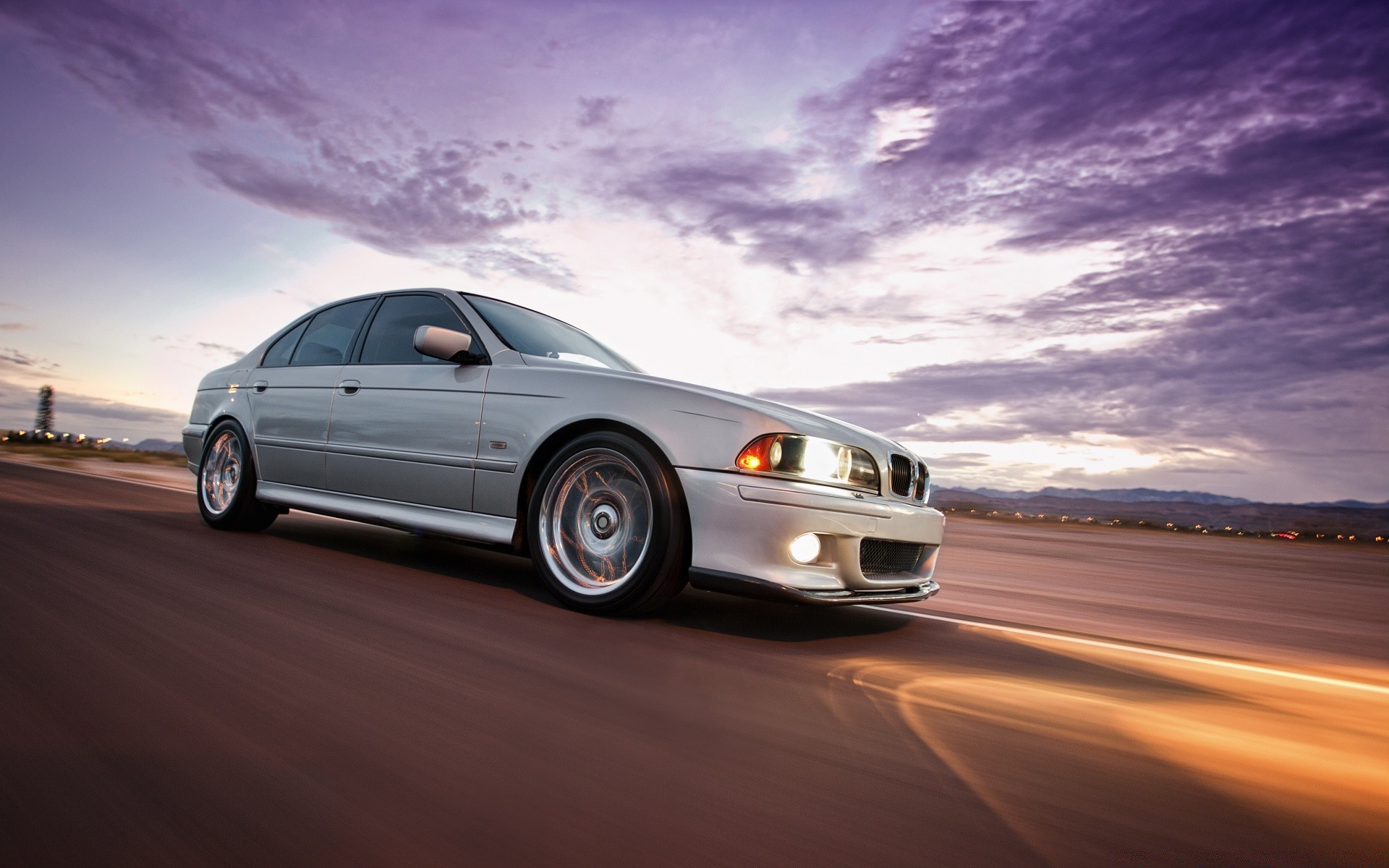 Carro em meio a um belo pôr do sol