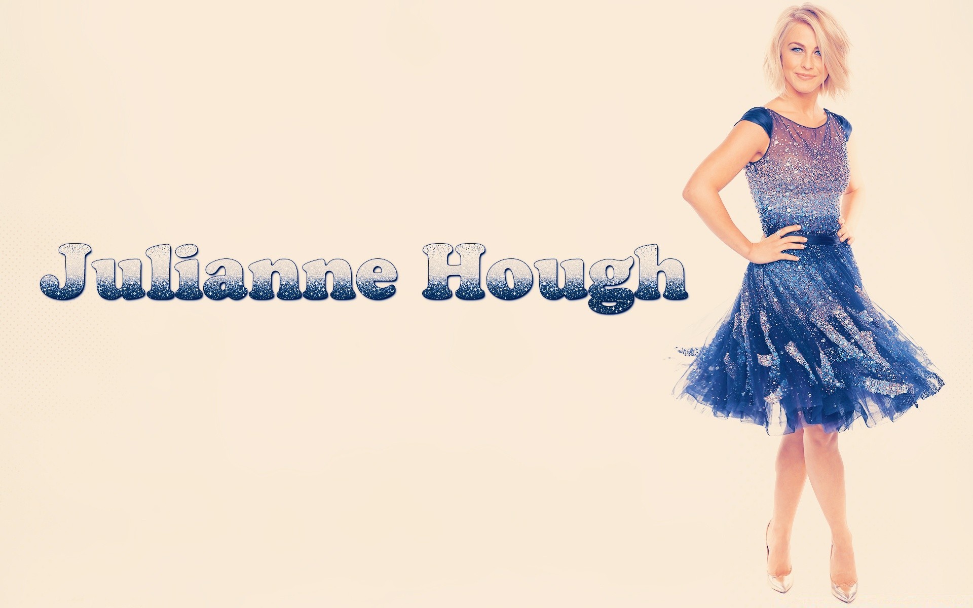 Menina em um vestido azul em um fundo bege
