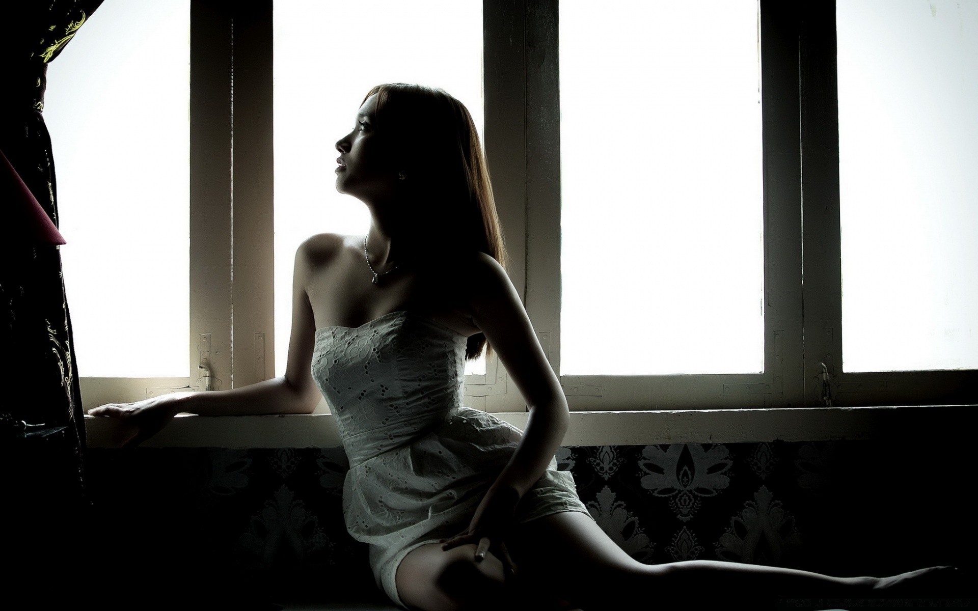 Menina pequena olhando pela janela