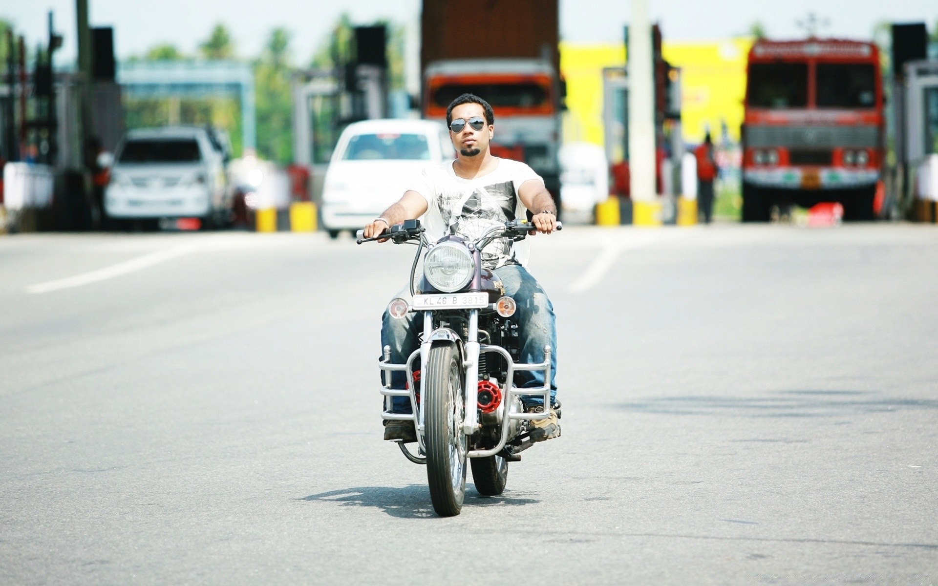 Homem anda de moto na estrada