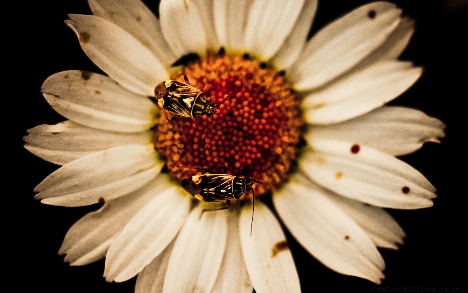 Abelhas sentadas em uma flor de camomila