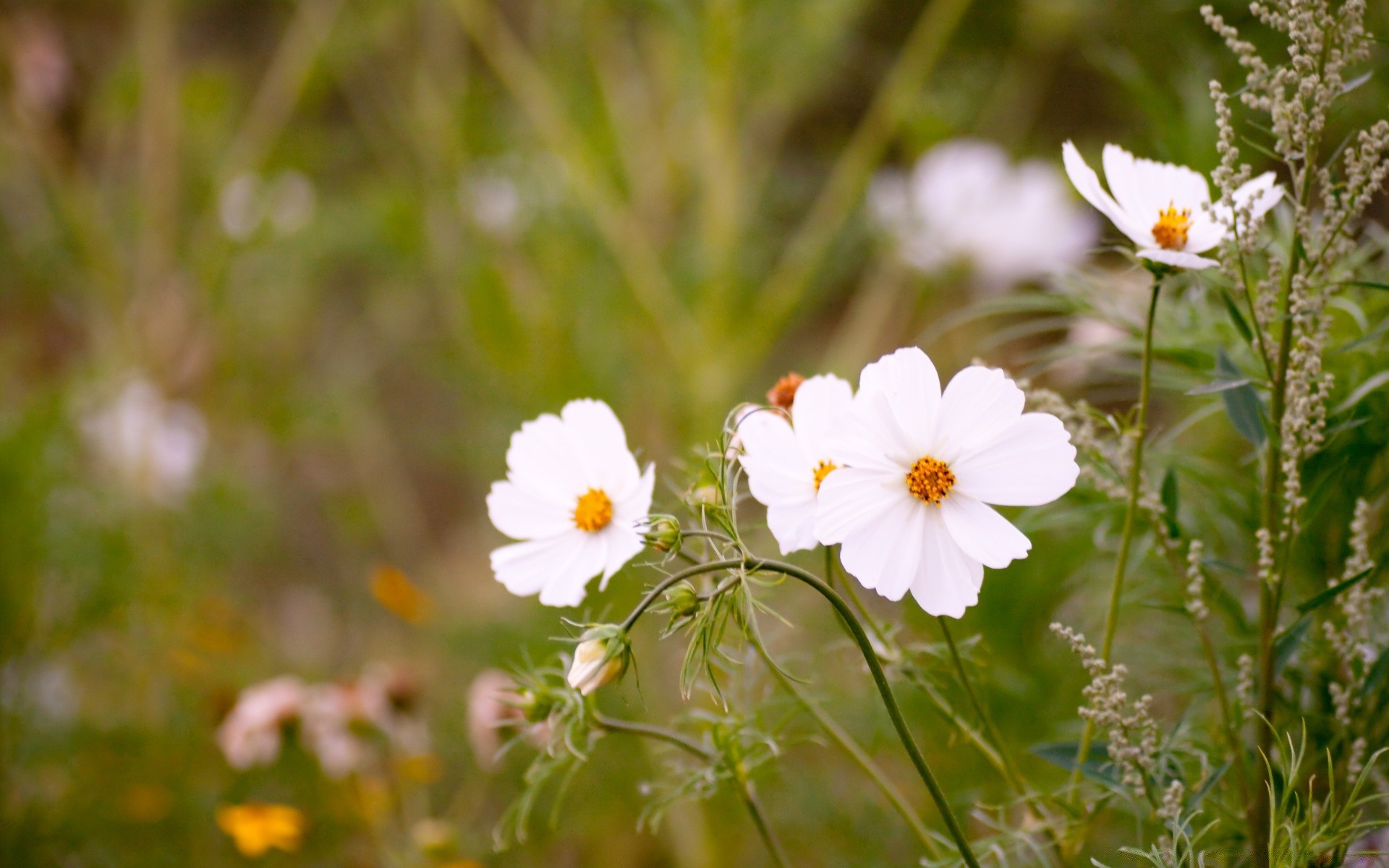 Flores brancas no gramado. Flora