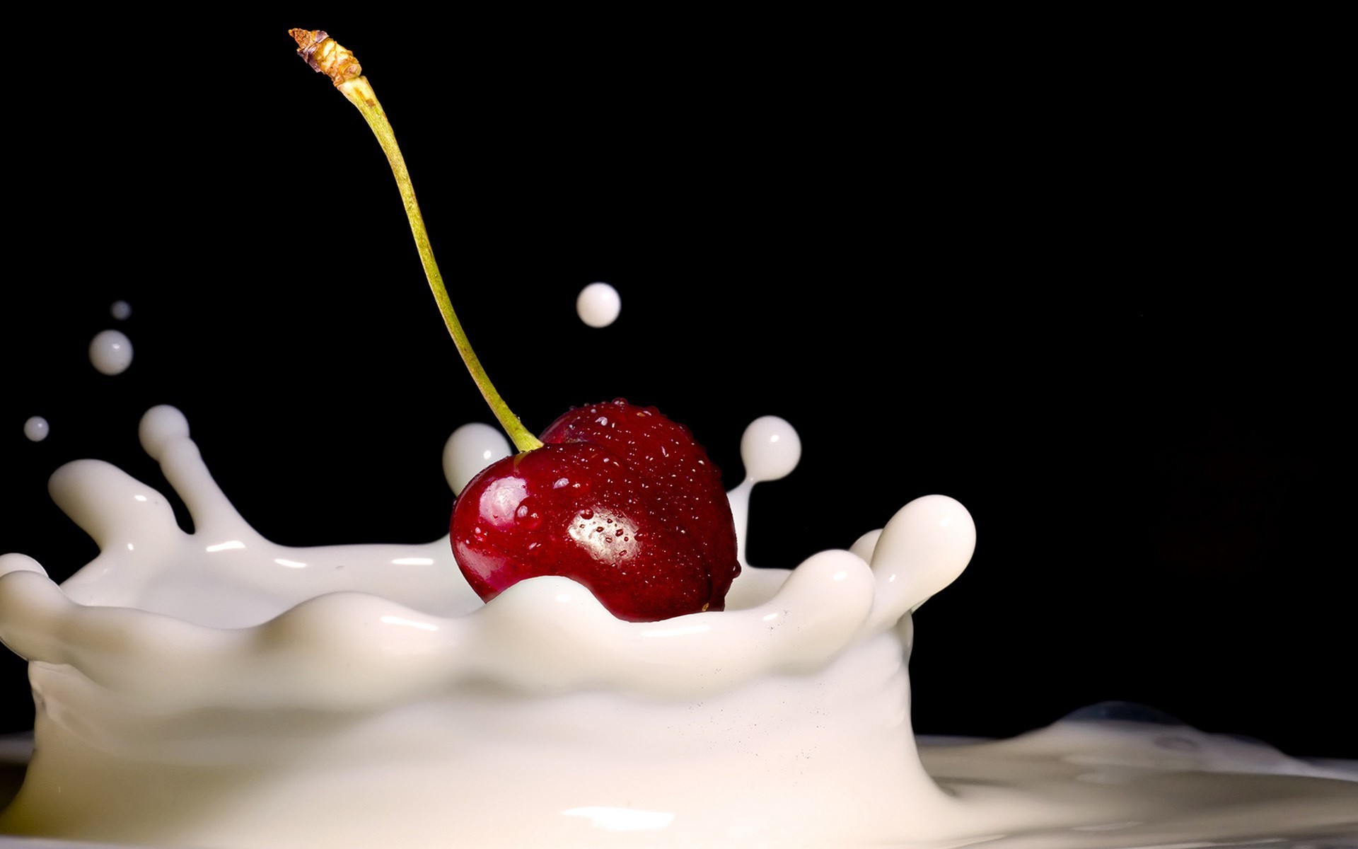 Cereja vermelha caiu no leite