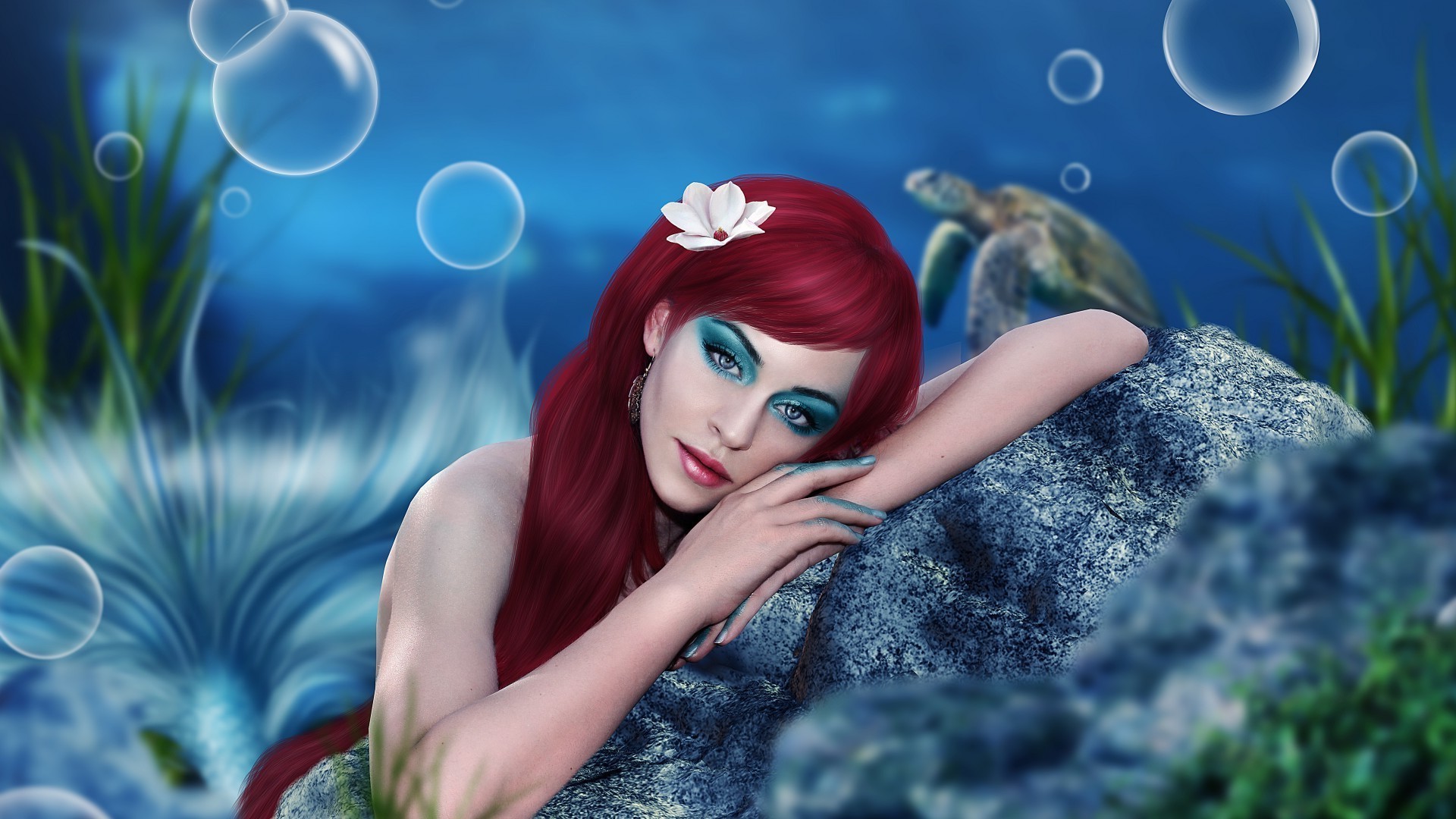 Uma rapariga bonita. modelo a pequena sereia na águaUma rapariga bonita. modelo A Pequena Sereia na água