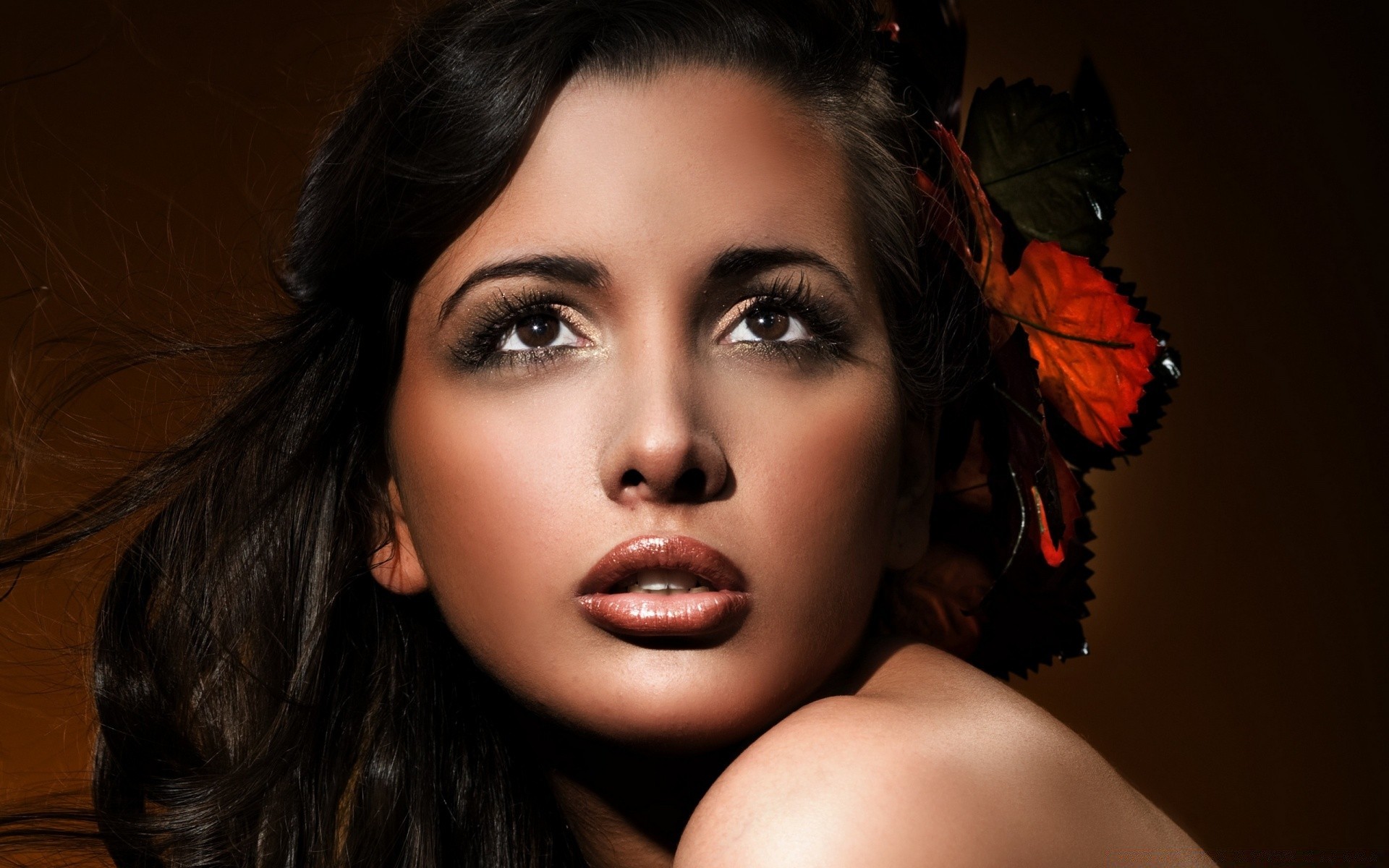 Uma atriz ou modelo com um olhar misterioso