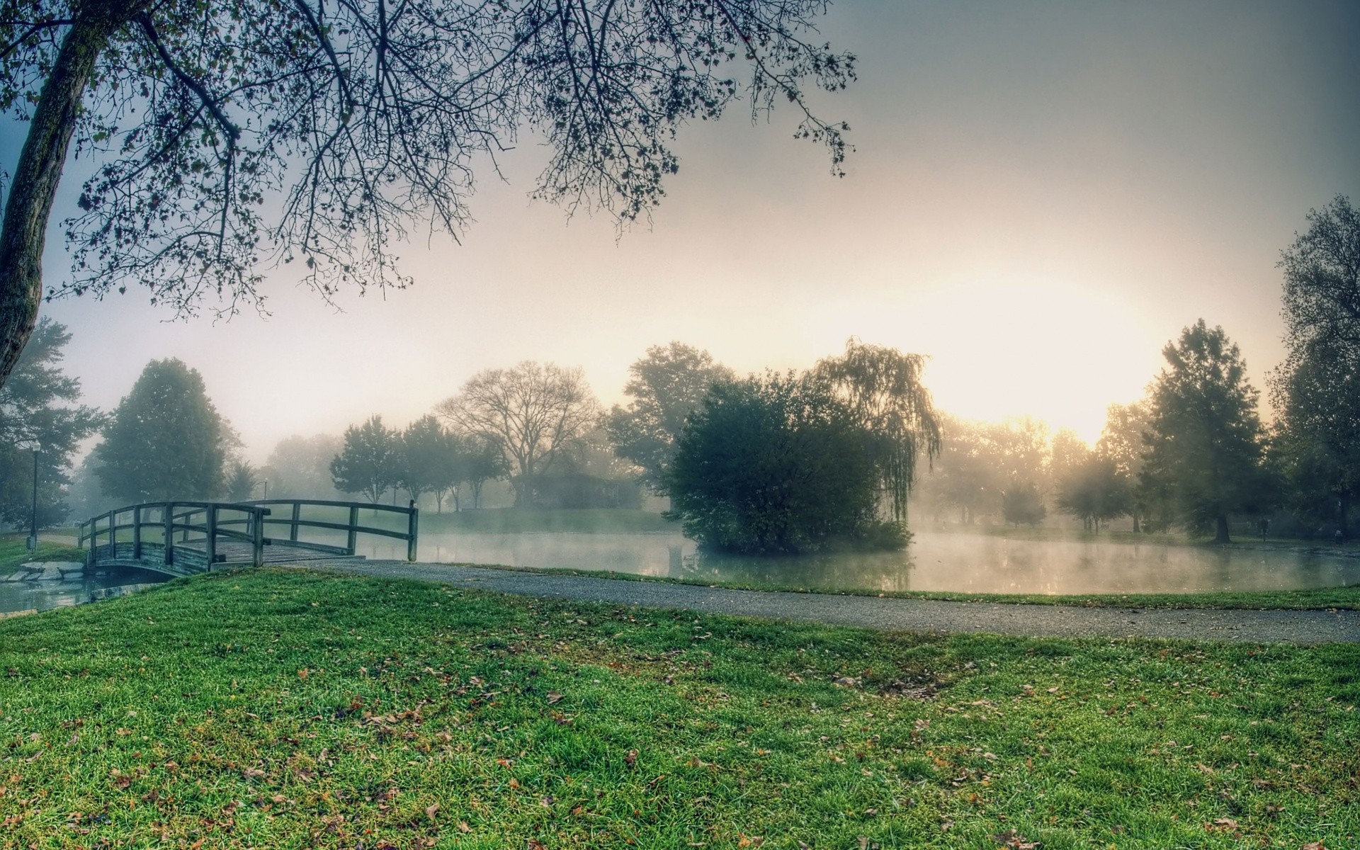 Névoa da paisagem sobre o caminho do lago ao longo do lago