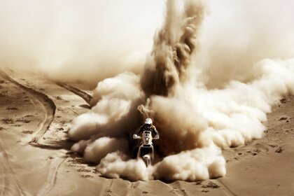 Foto monocromática com uma motocicleta na praia