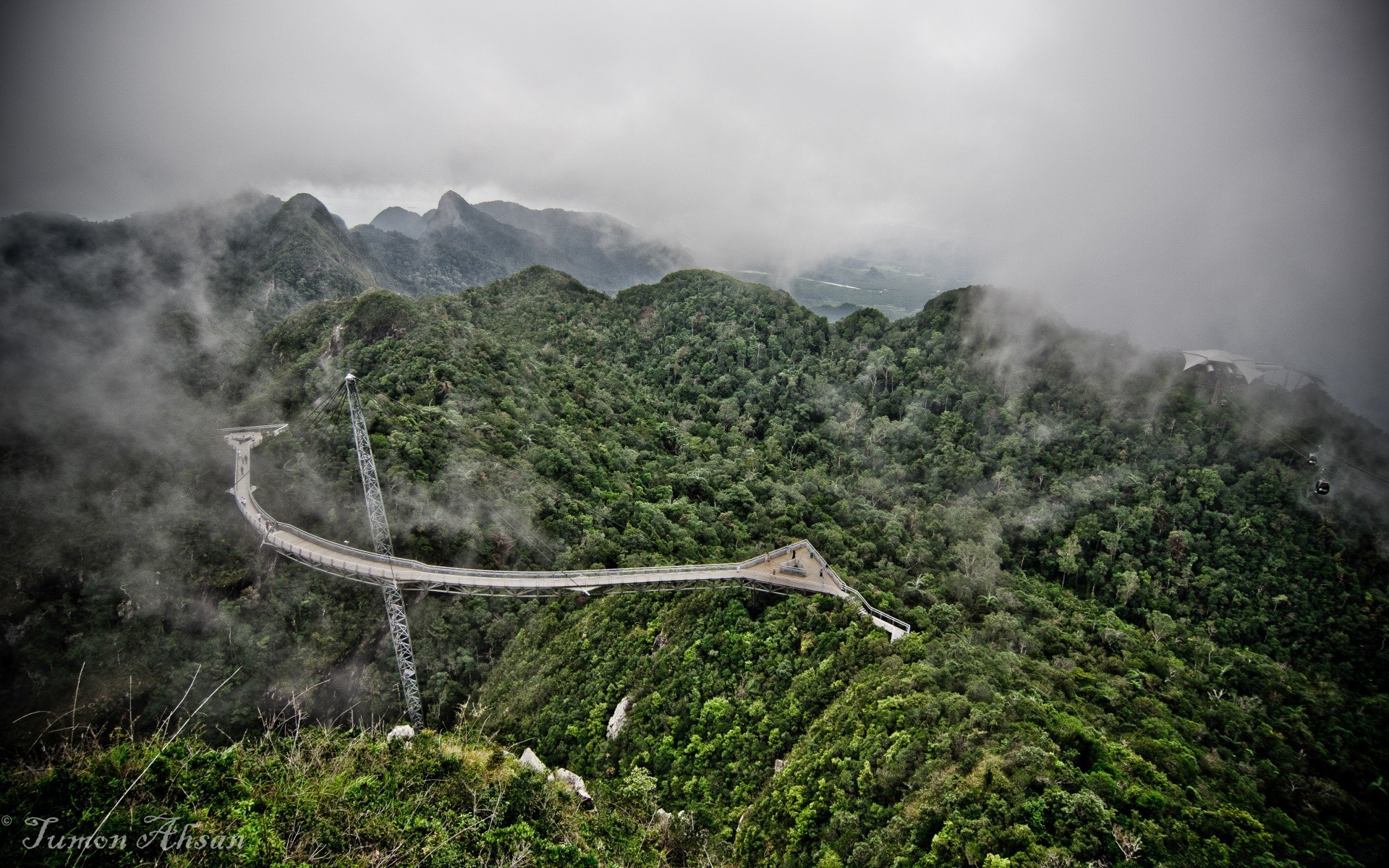 A estrada da montanha serpenteia pela encosta