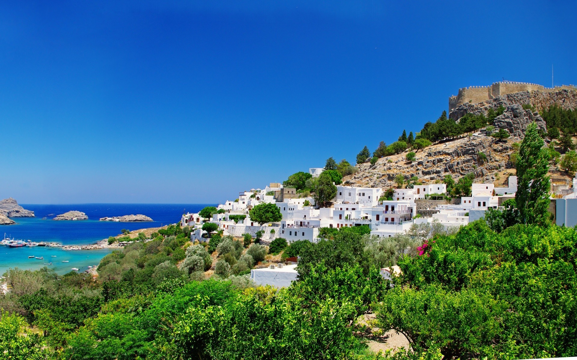 Estruturas arquitetônicas em uma encosta de montanha perto do mar