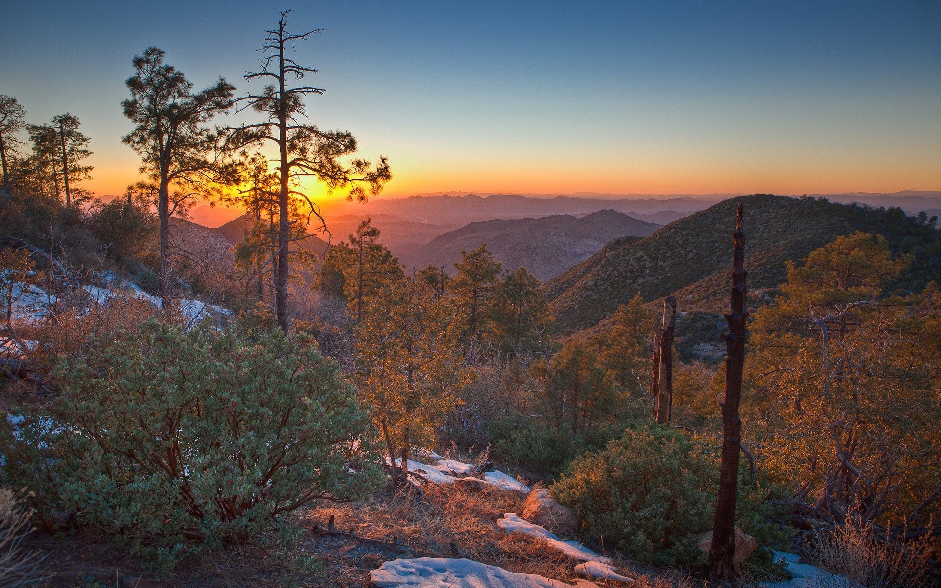 Montanha solitária no fundo do céu brilhante do pôr do sol