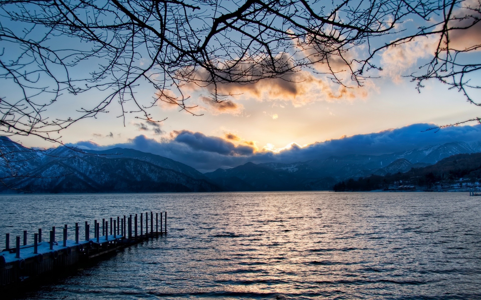 O sol atravessando as nuvens sobre o lago