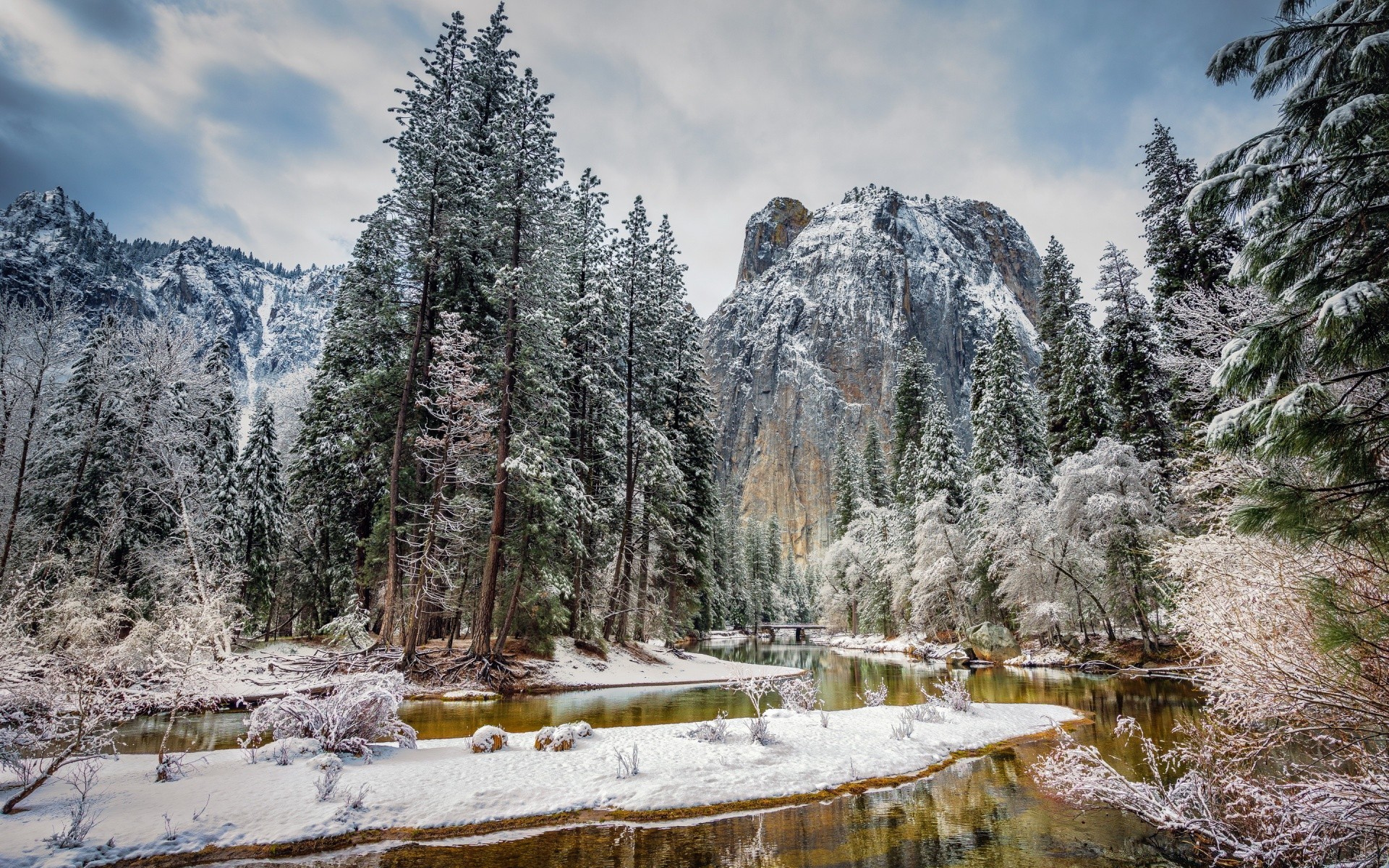 As nuvens estão presas nos cumes das montanhas. Lago limpo no sopé das montanhas. Verde ель Área Reservada