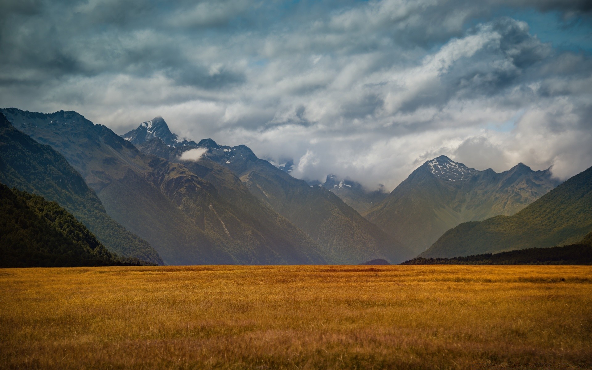 Grama de Prado e montanhas