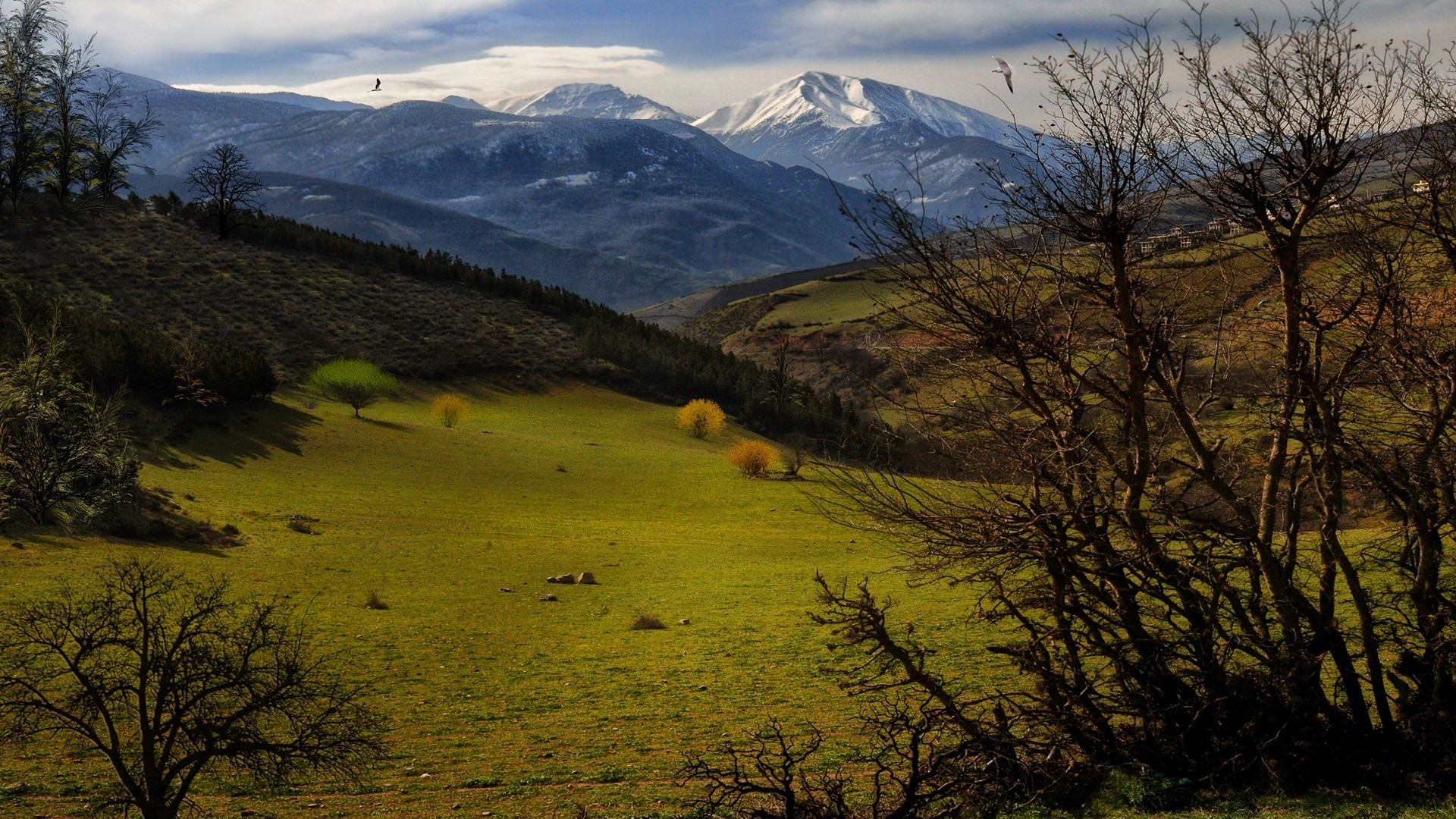 Campos verdes No fundo das montanhas
