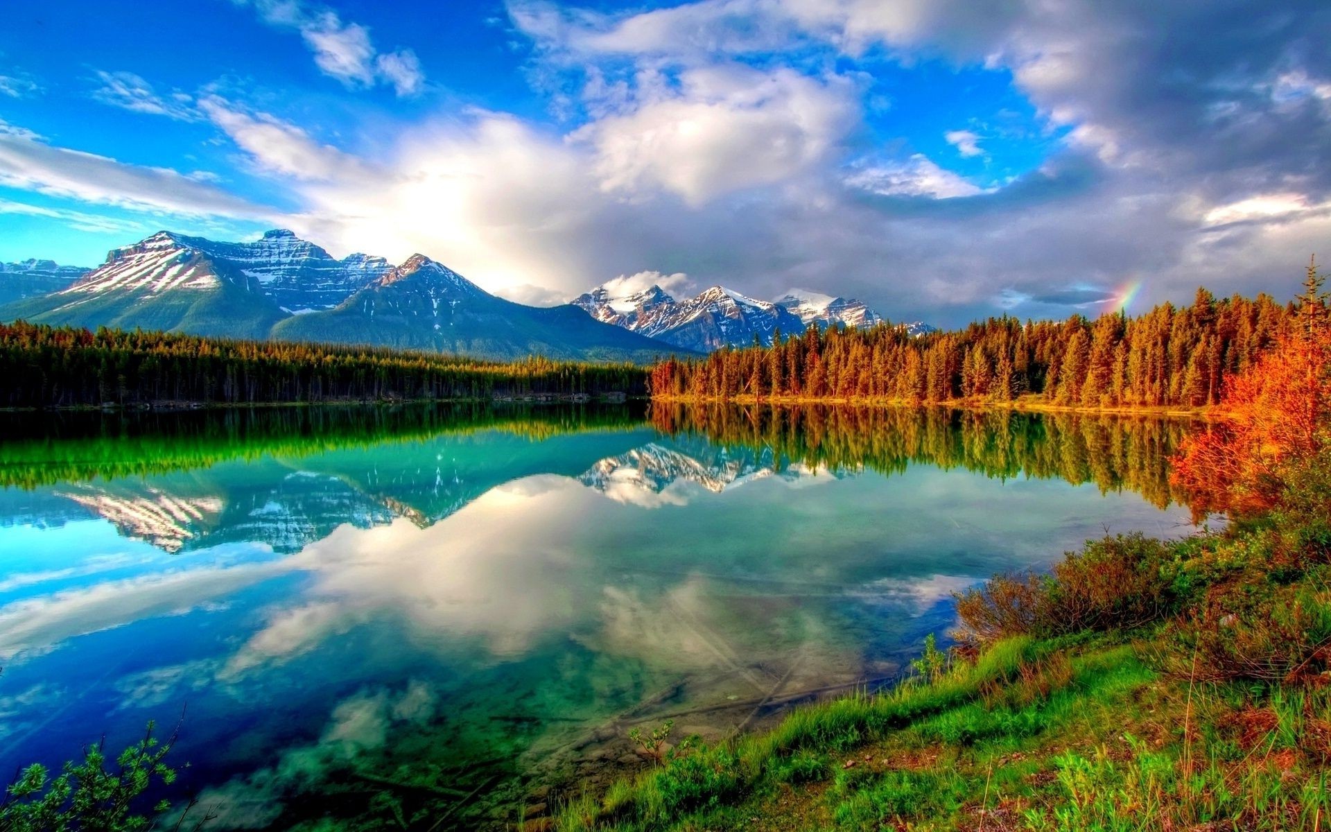 Prado de flores vermelhas no fundo das montanhas ao pôr do sol