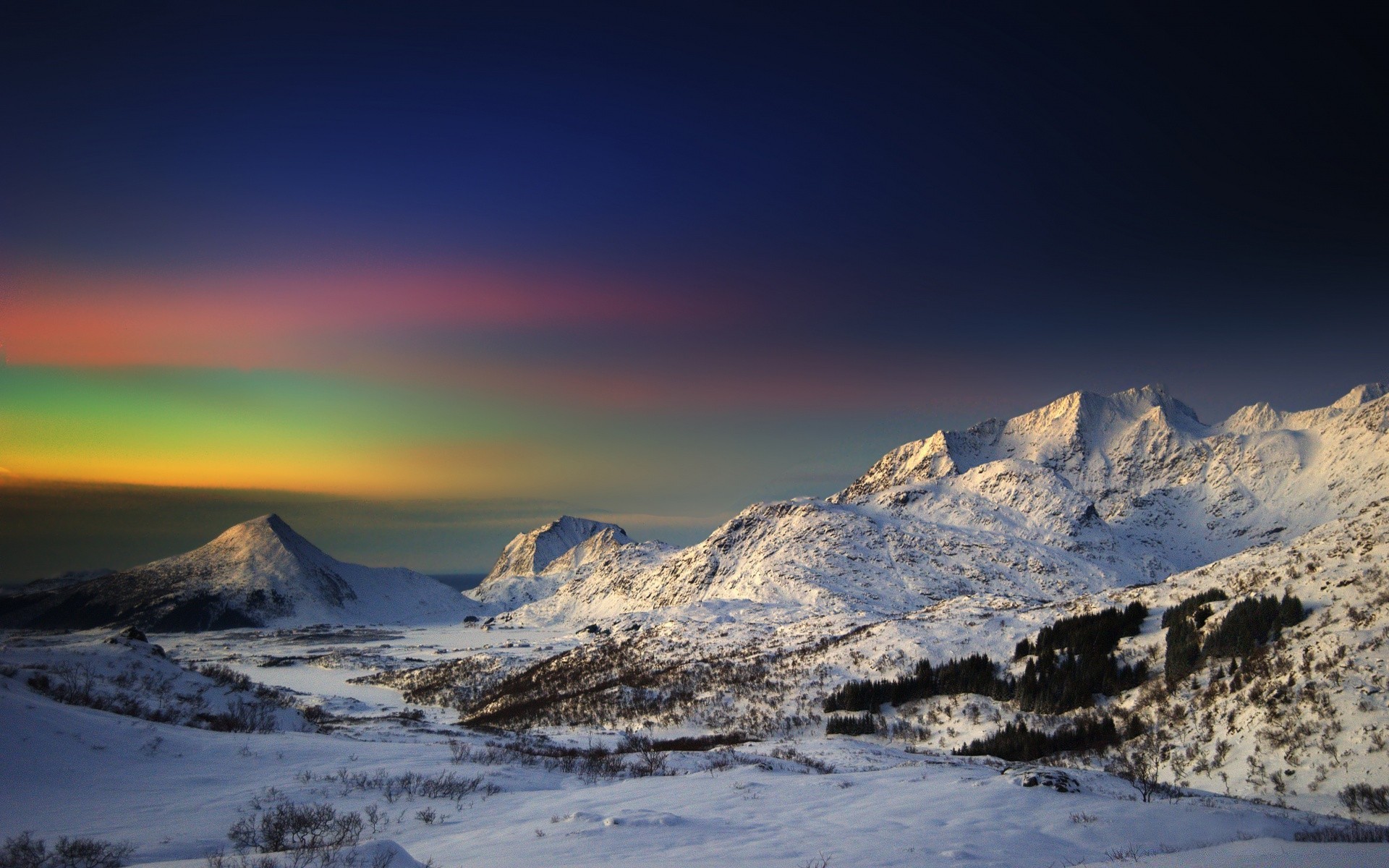 O nevoeiro se espalhou sobre as montanhas nevadas