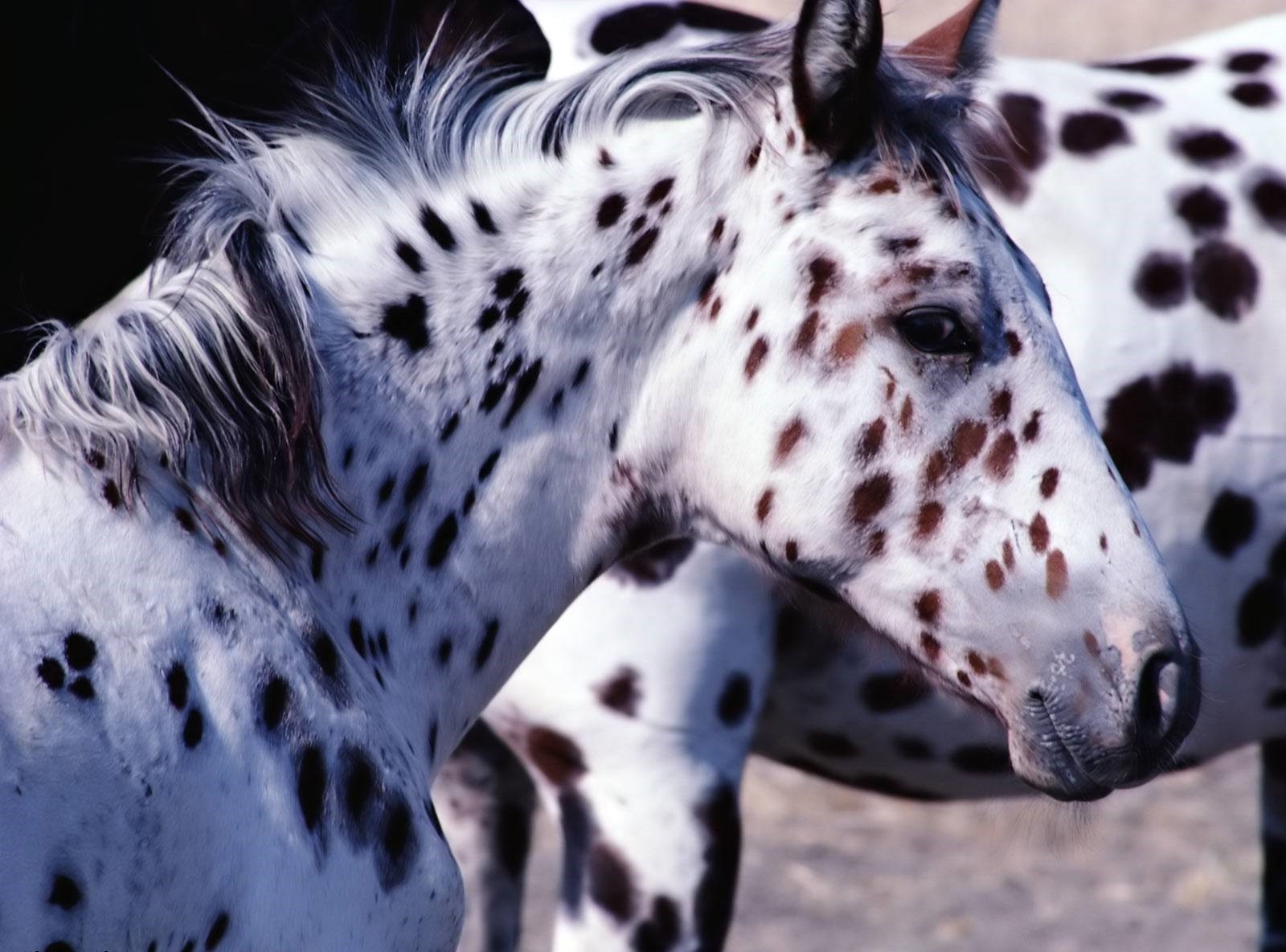 Um par de cavalos em maçãs na natureza
