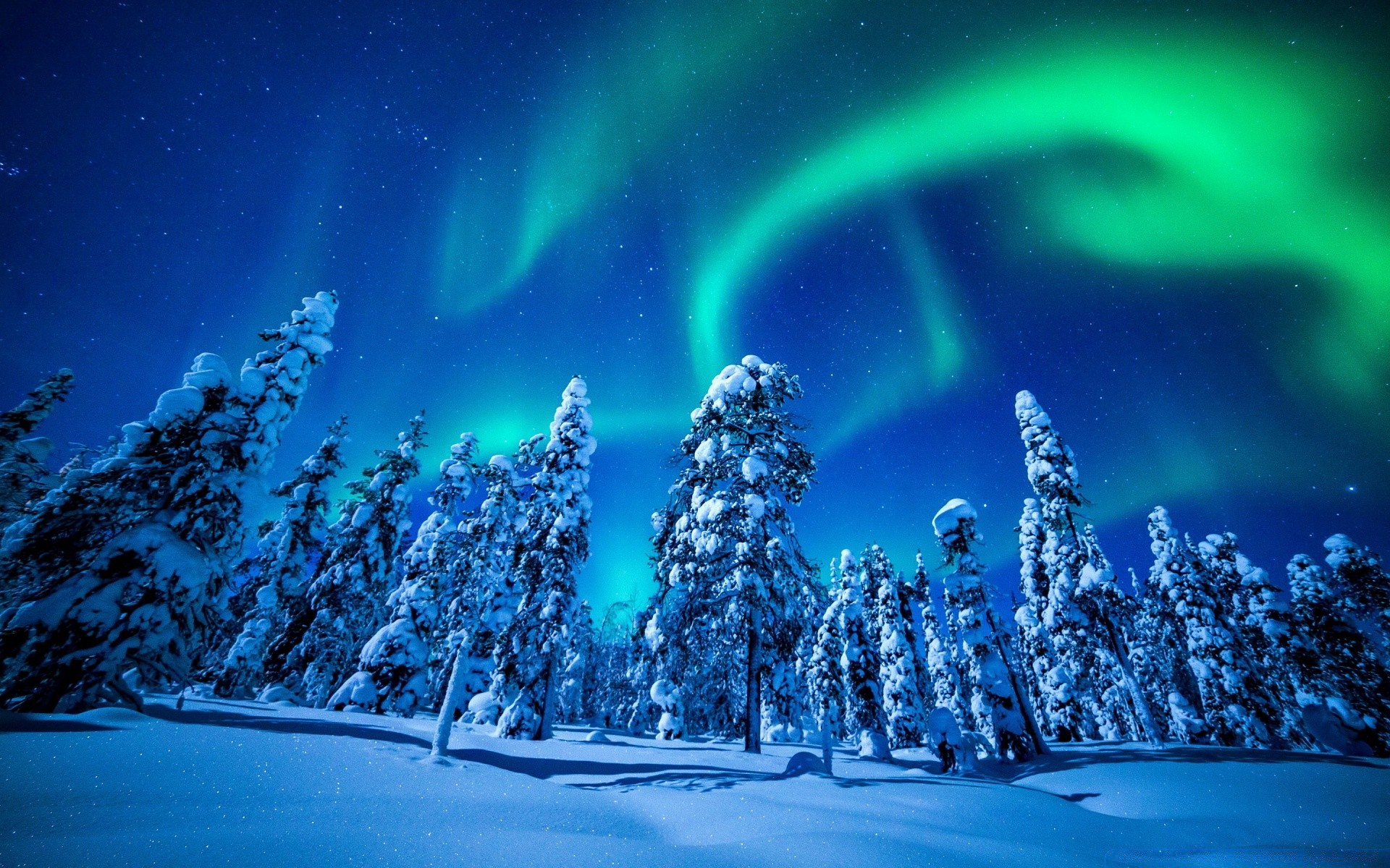 Uma pequena árvore de natal no meio de uma floresta coberta de neveUma pequena árvore de Natal no meio de uma floresta coberta de neve