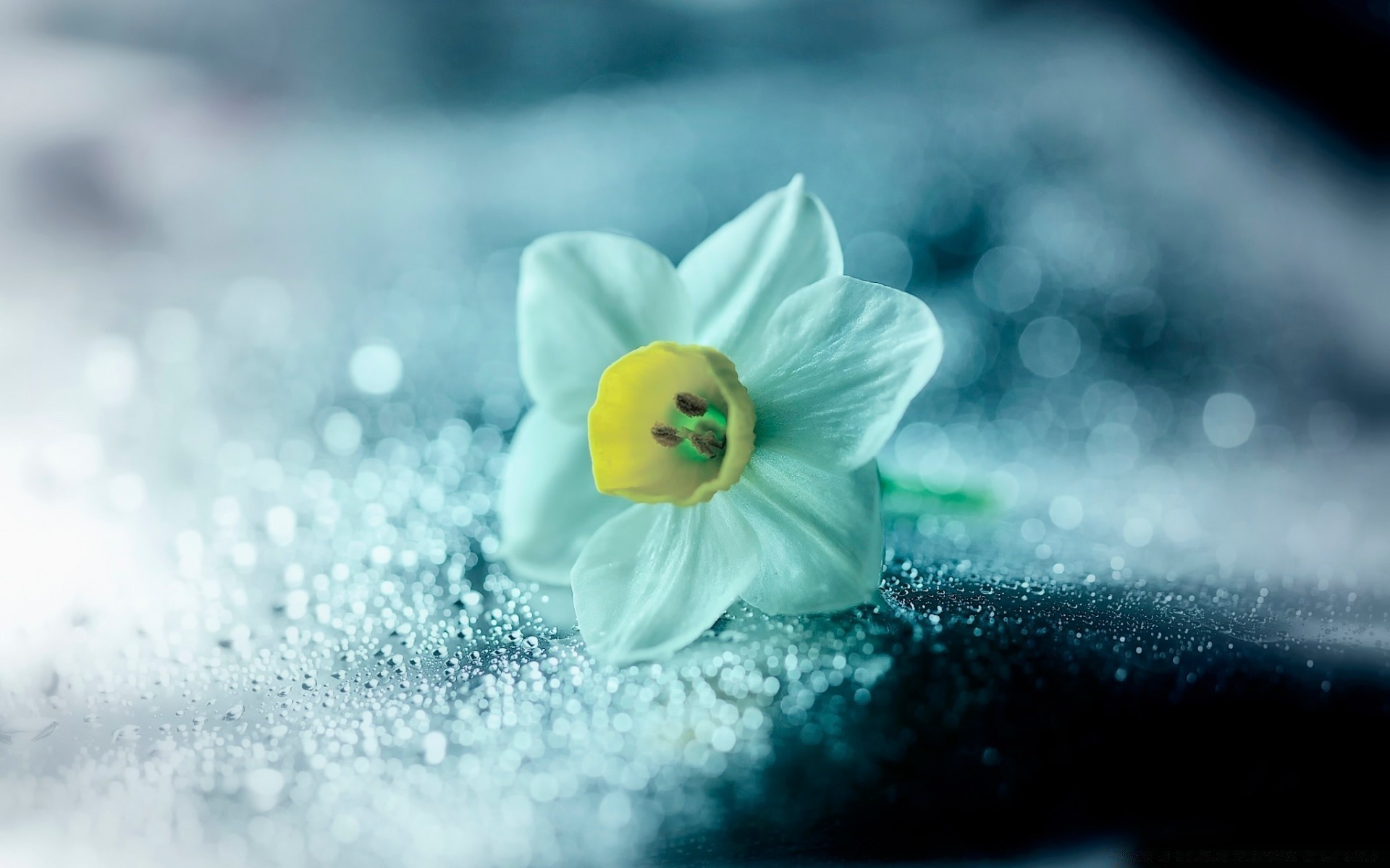 Flor branca de neve deitado na geada