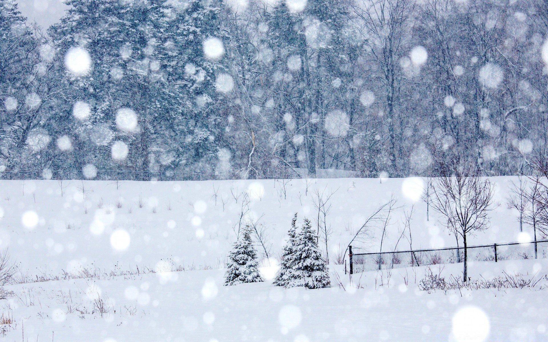 Vista das árvores na neve pesada