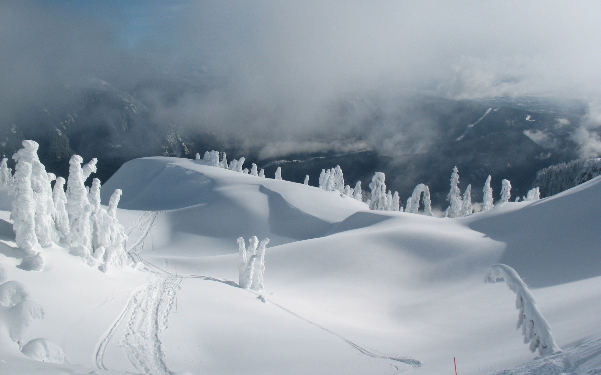 Paisagem de inverno em um pico de montanha coberto de nevePaisagem de inverno em um pico de montanha coberto de neve