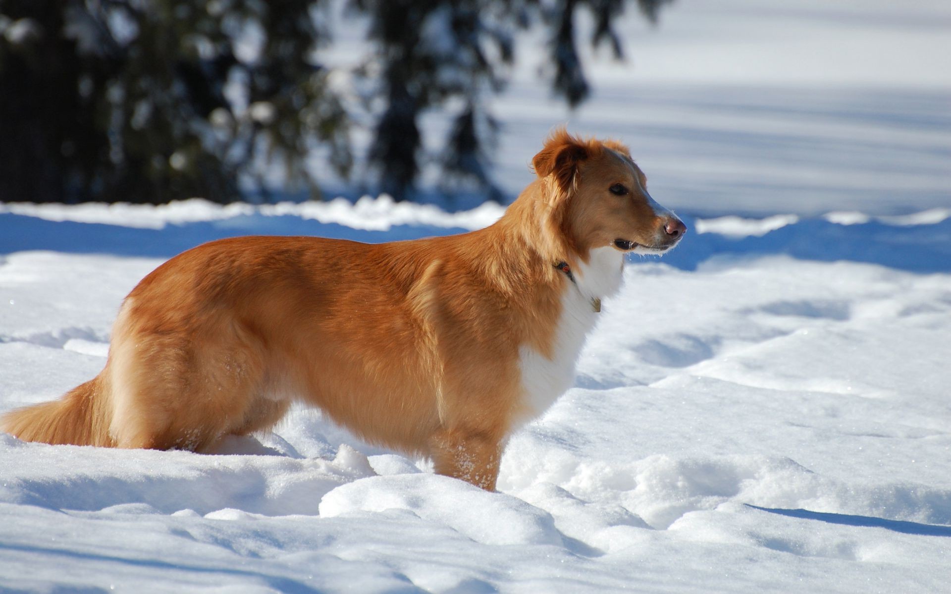 Cão vermelho na neve