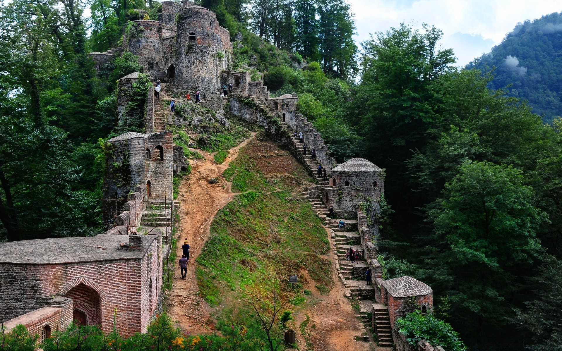Ilha tropical no meio do oceano, muita água e peixes nadam