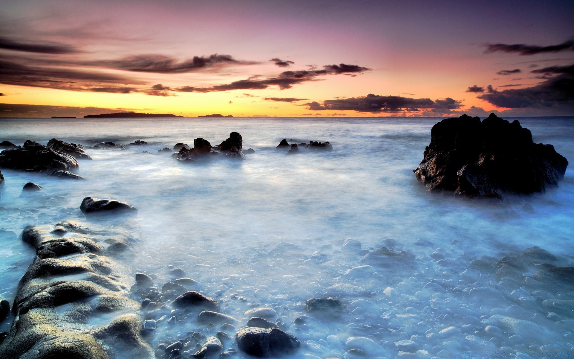 Pôr do sol à noite à beira-mar