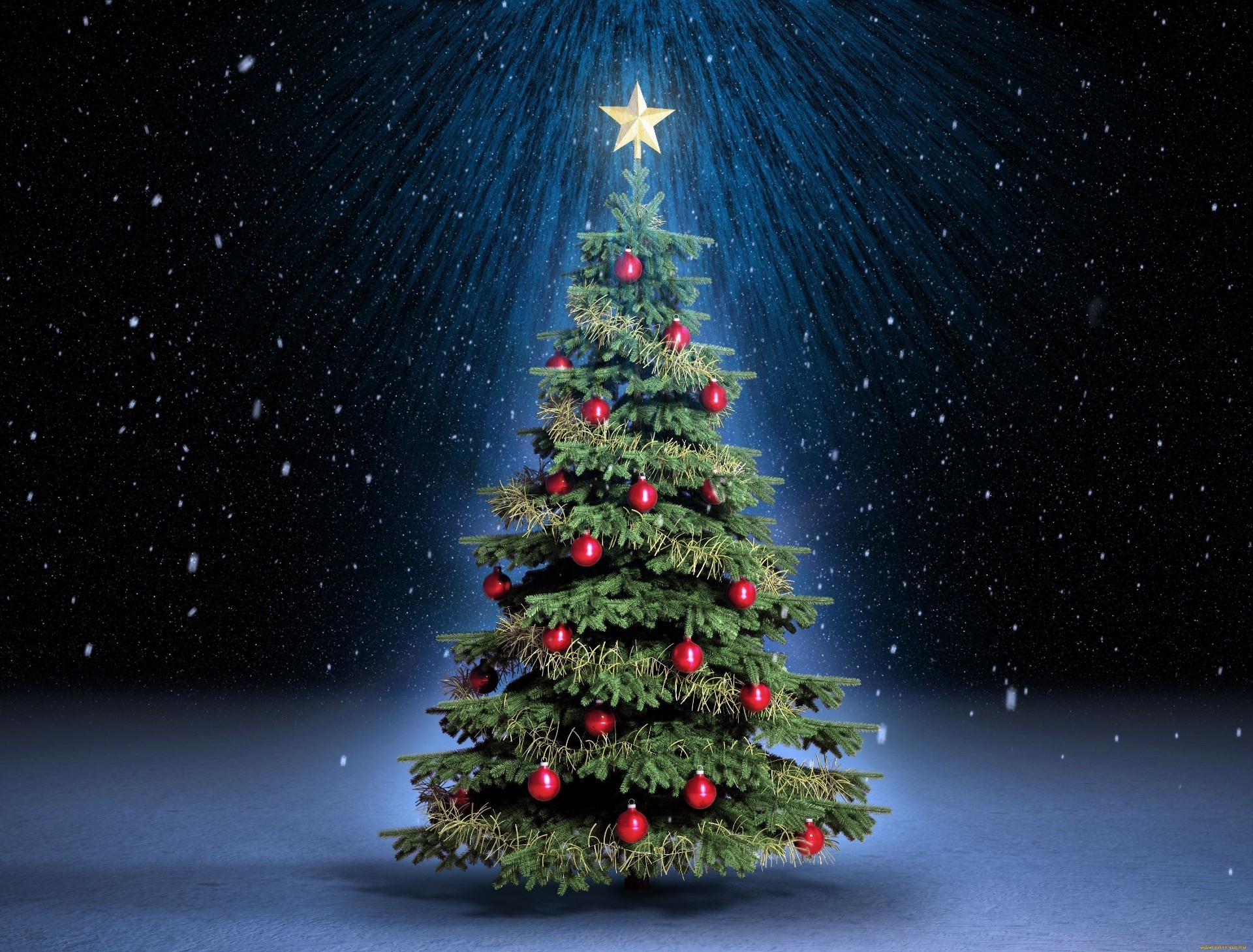 Árvore de Natal decorada com guirlandas em um fundo escuro