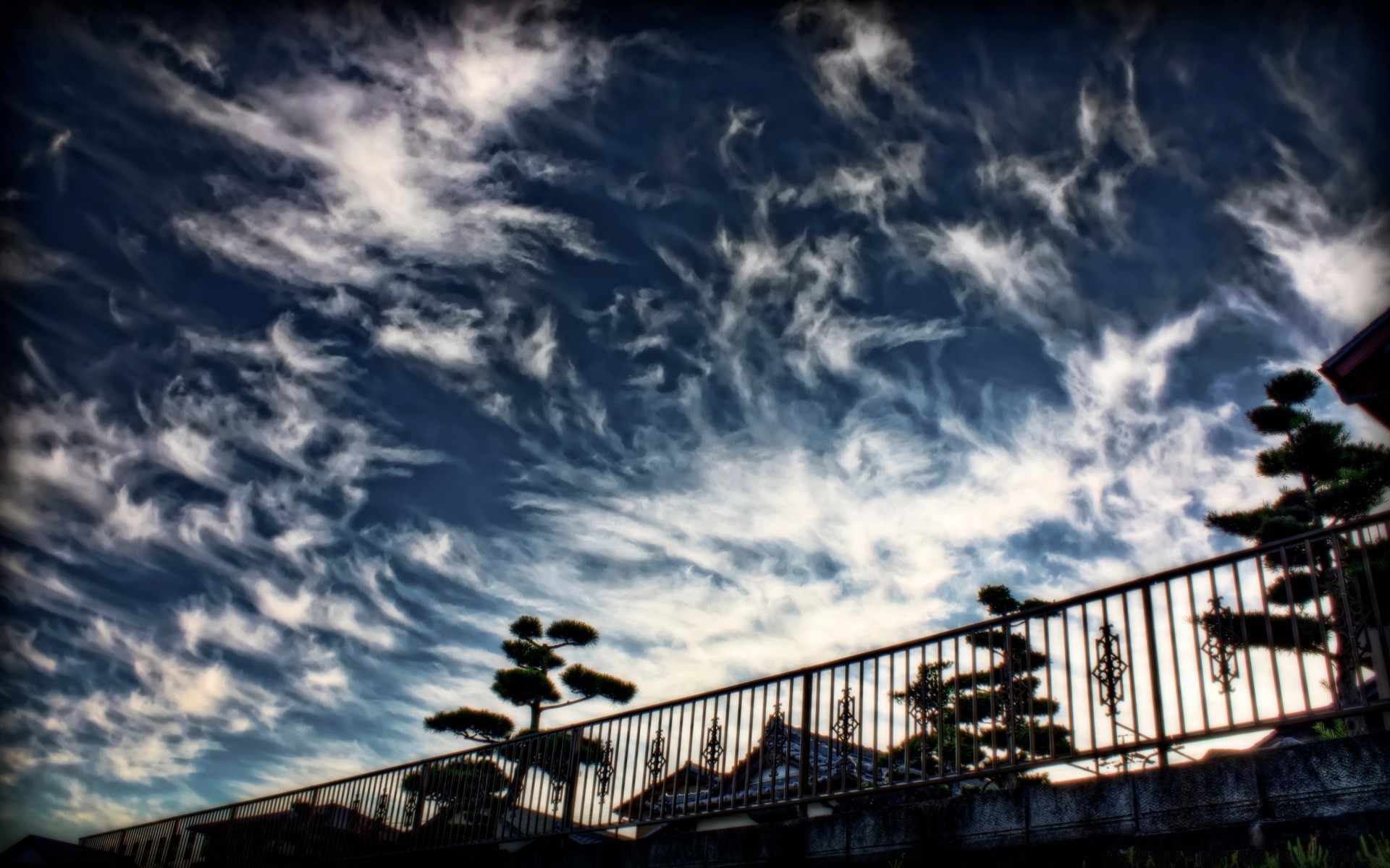 Um campo com flores cor-de-rosa sobre um fundo de nuvens brancas