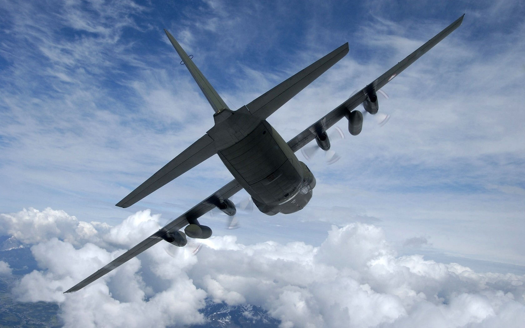 Avião de transporte nas nuvens