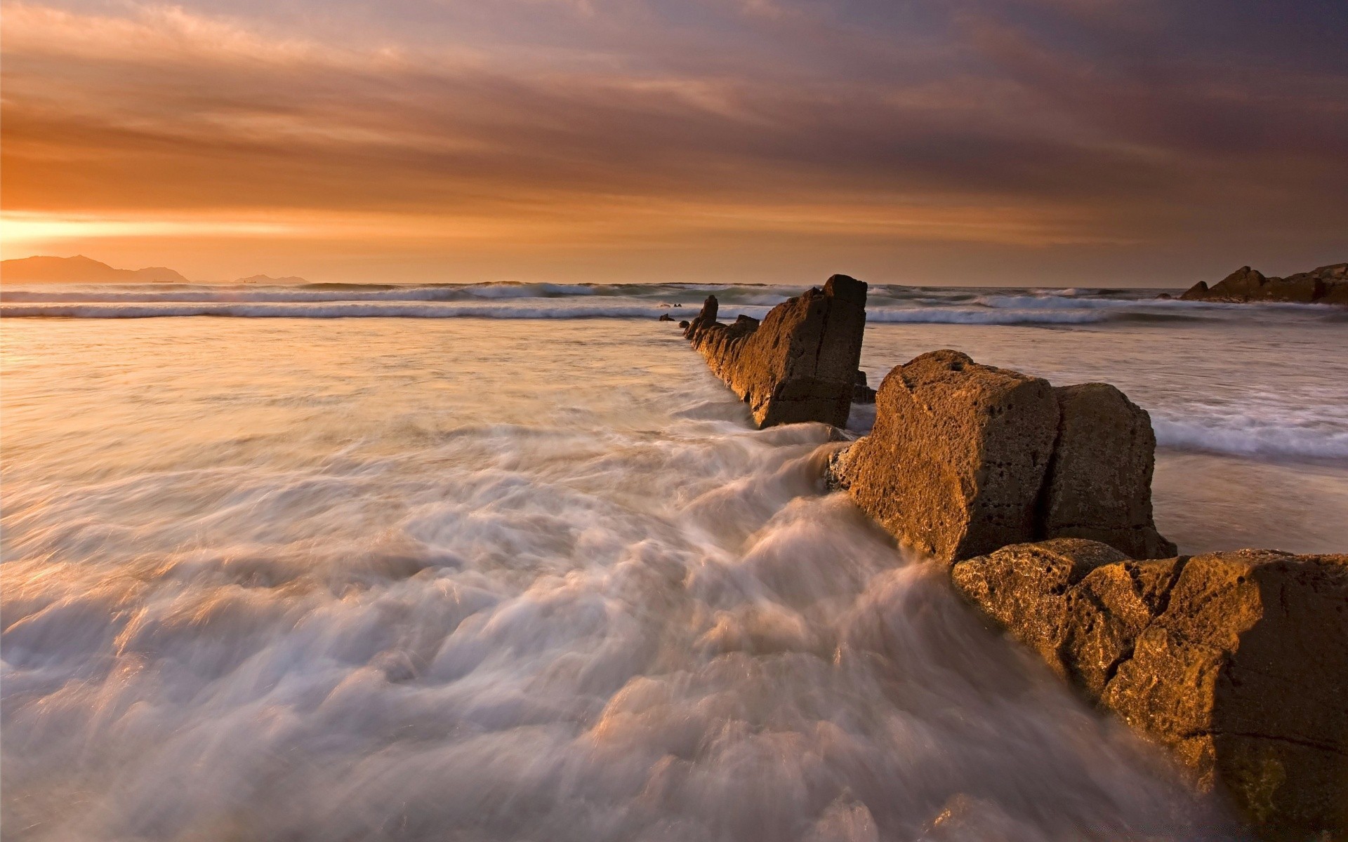 Pôr do sol sobre o mar calmo, o sol se põe no oceano