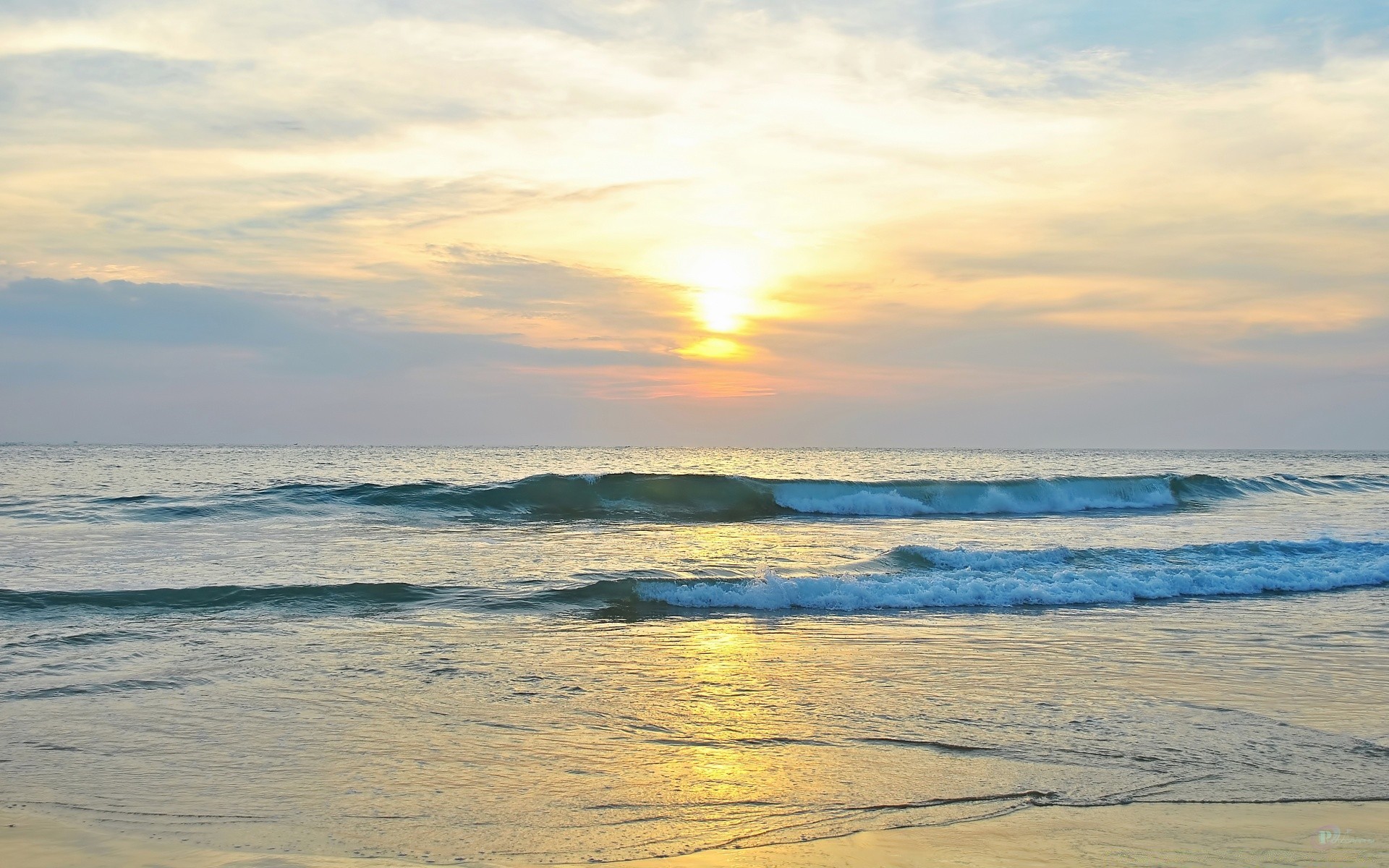 Pequenas ondas em uma praia arenosa