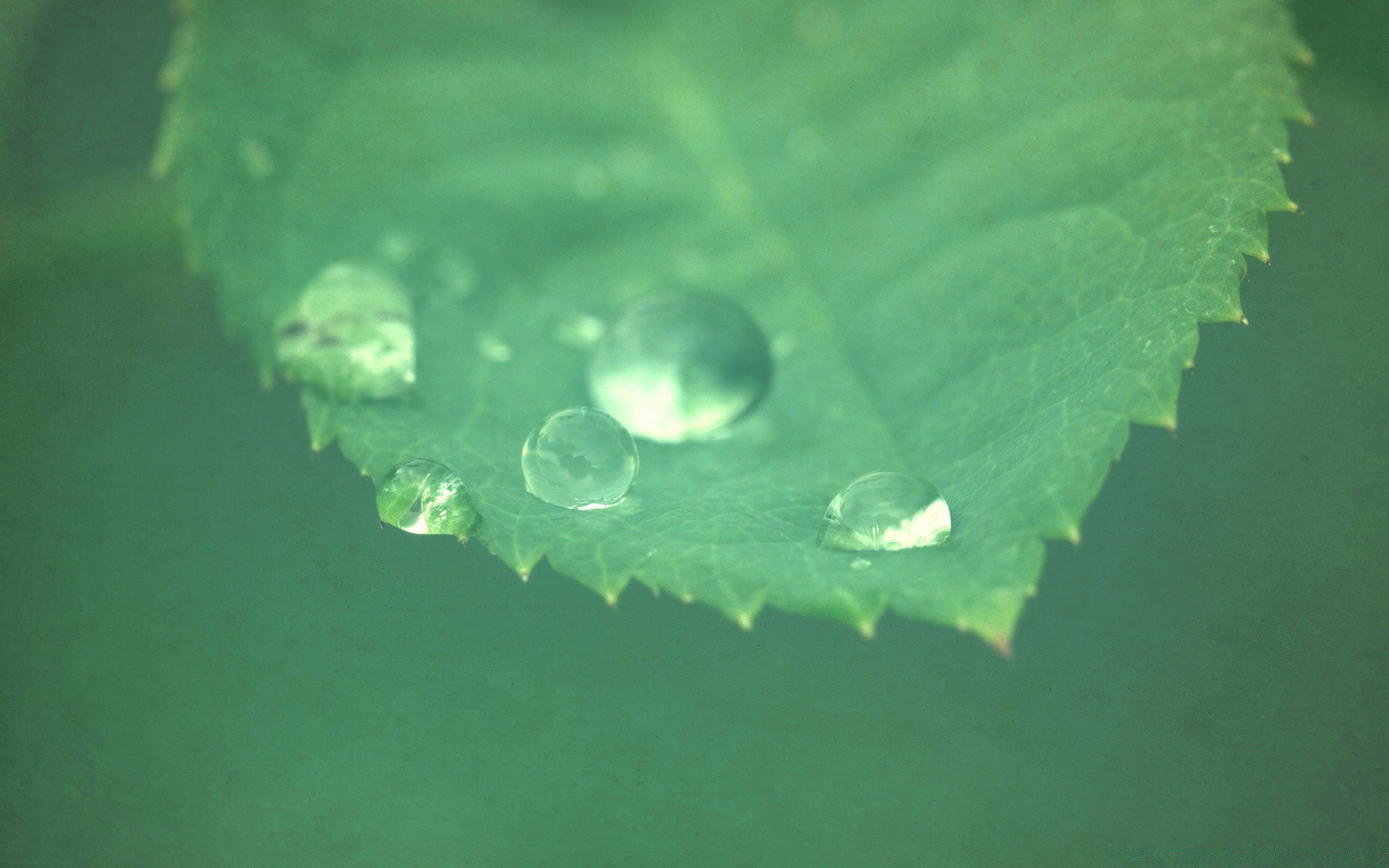 Gotas de orvalho nas pontas afiadas das folhas de grama